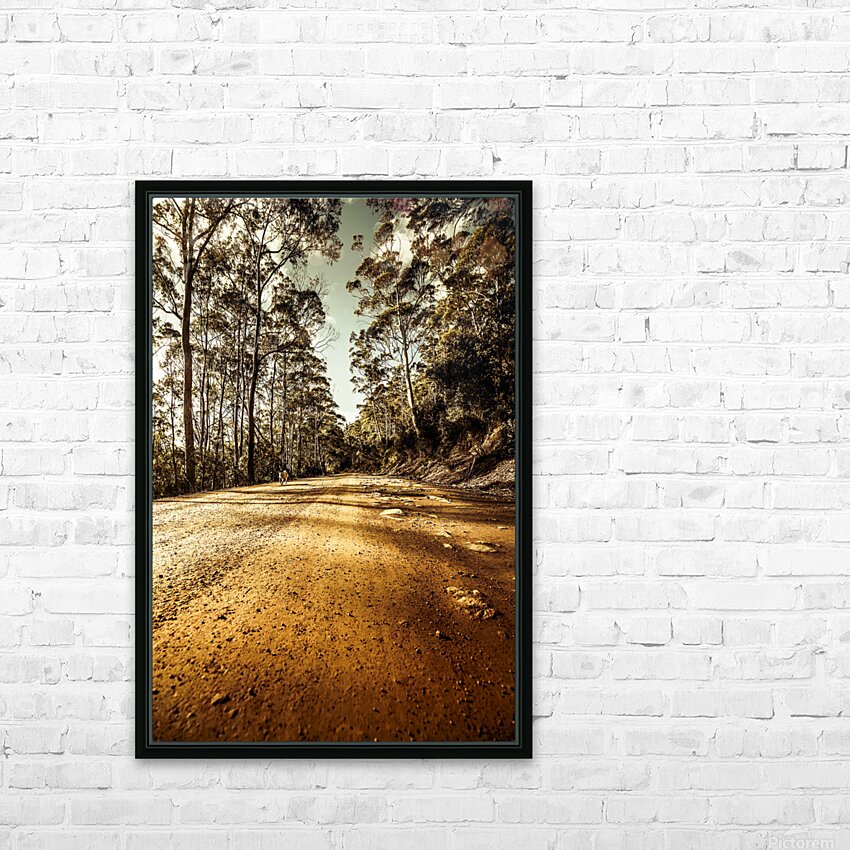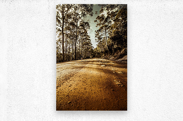 Off-road exploration concept of a dirt and rock road leading straight thoroughfare a mountainous range. Off the beaten track taken: Judbury Tasmania Australia