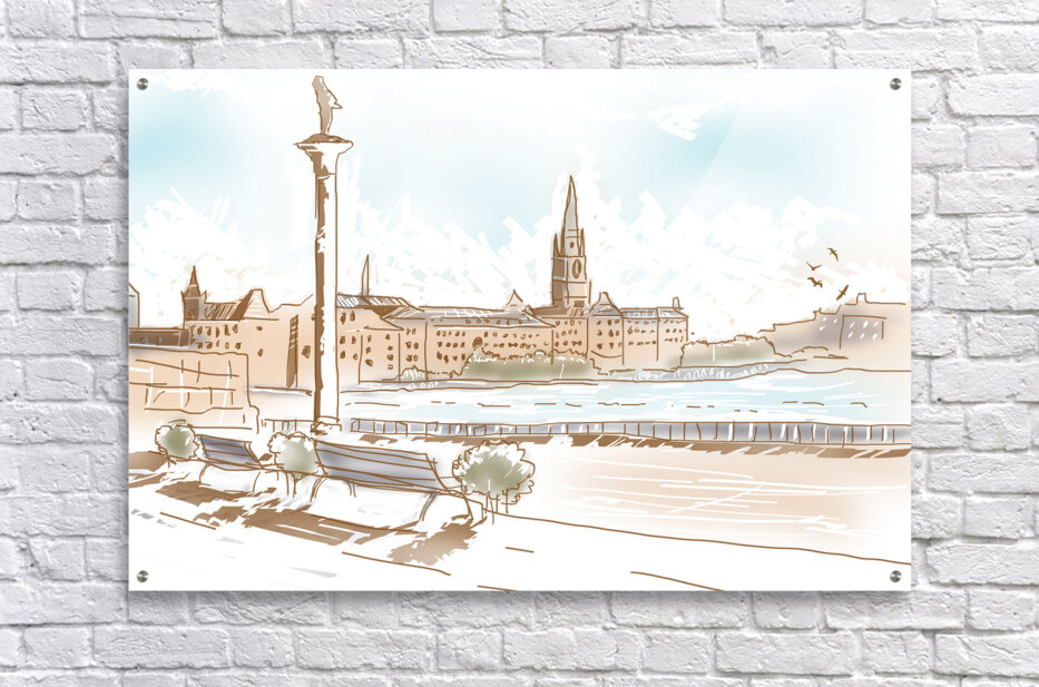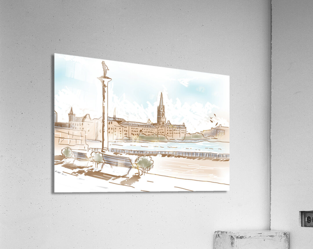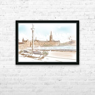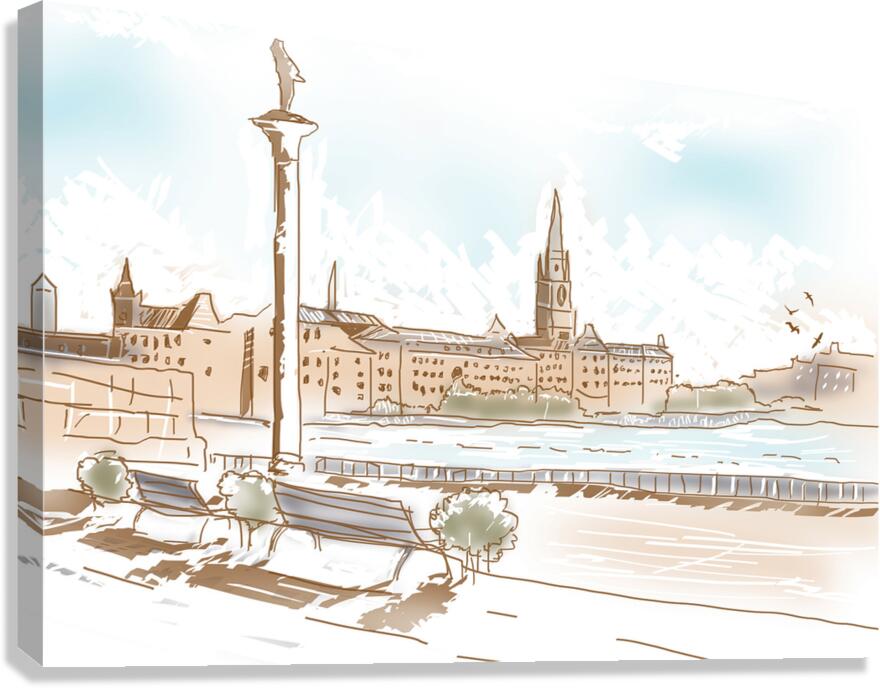 Fine art landscape sketch of Stockholm Sweden  Frame print
