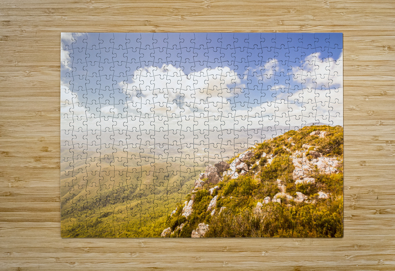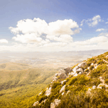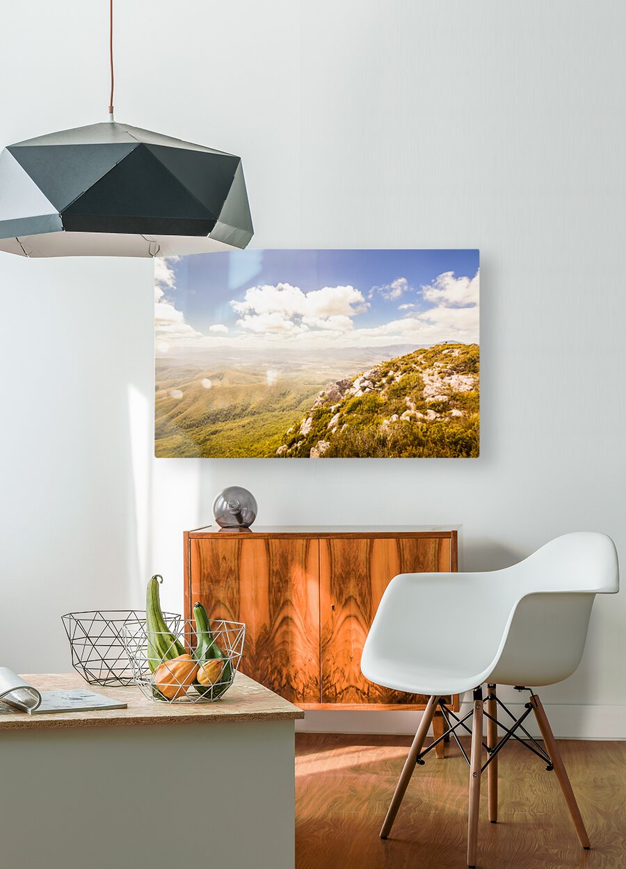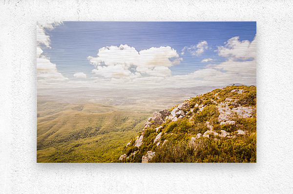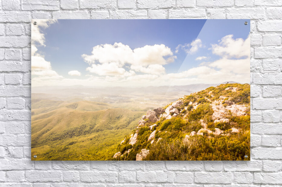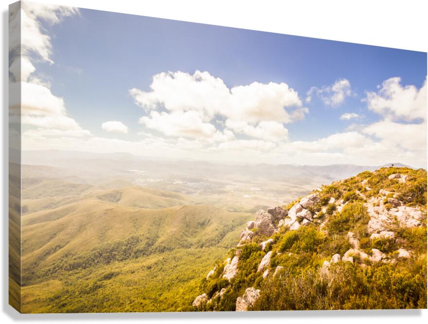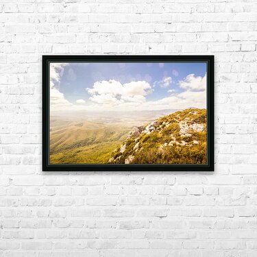 Nature landscape on a rocky mountain peak with an outlook to West Coast Tasmania valleys. Taken Mt Zeehan Australia