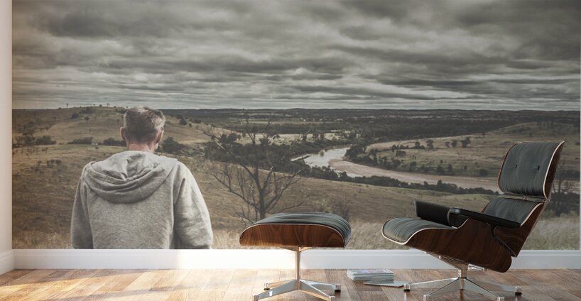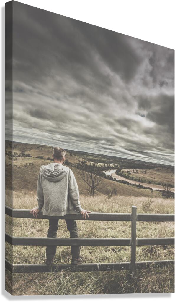 Calm before the storm as a man sits in waiting for knowing whats to come will be a life changing journey. Waynes Hill Lookout Mundubbera Queensland Australia