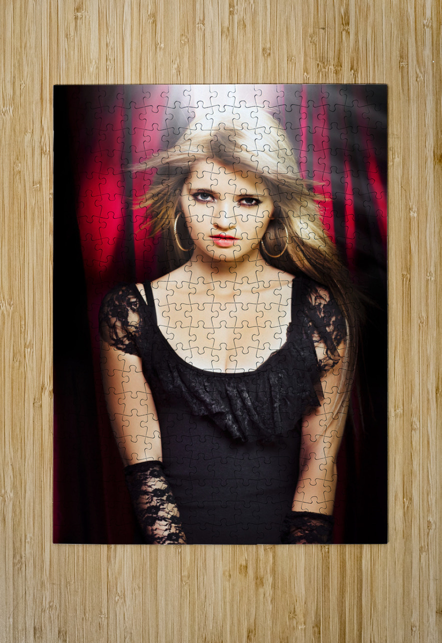 Red curtain theatre performance under spotlight Jorgo Puzzle printing