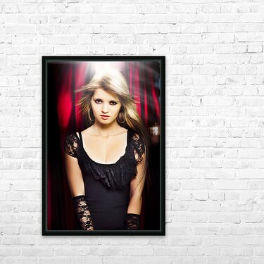 Red curtain theatre performance under spotlight Picture Frame Printing