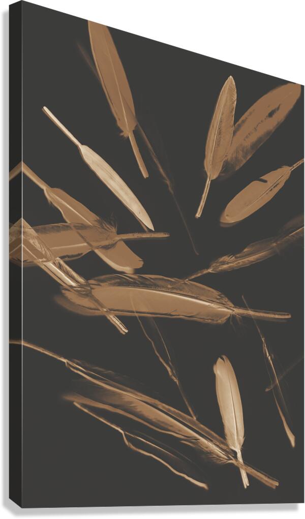 Abstract art on a weightless design in soft falling feathers on dreamy black background. Feather Feature