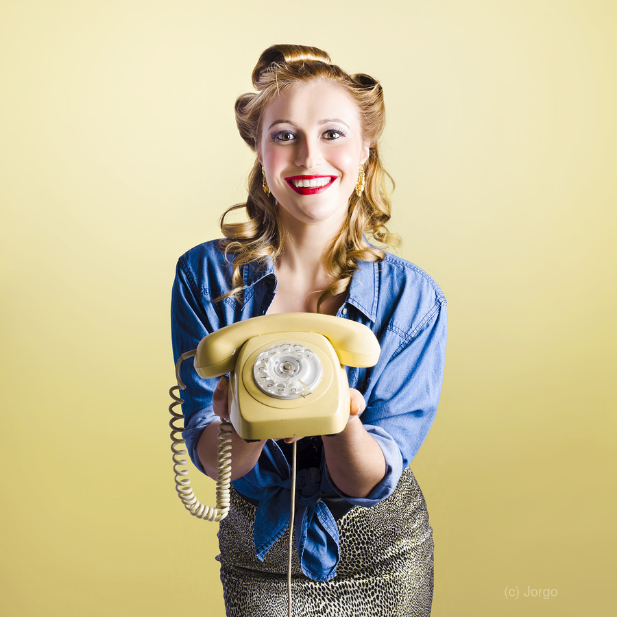 Pin-up hotline phone operator. Call Us! Picture Frame Printing