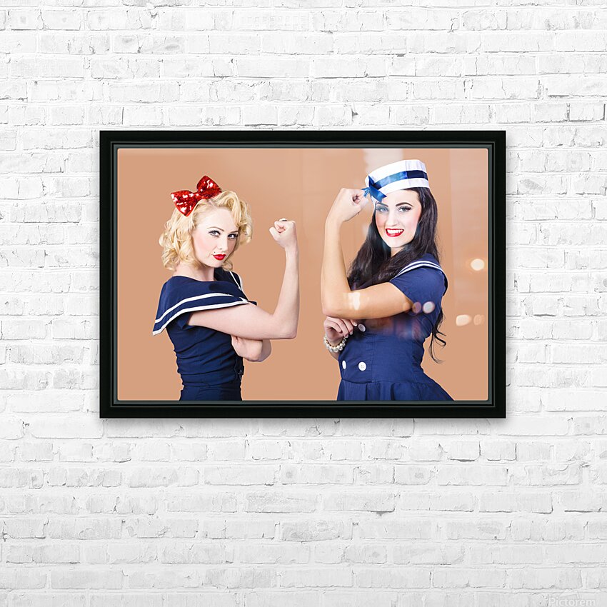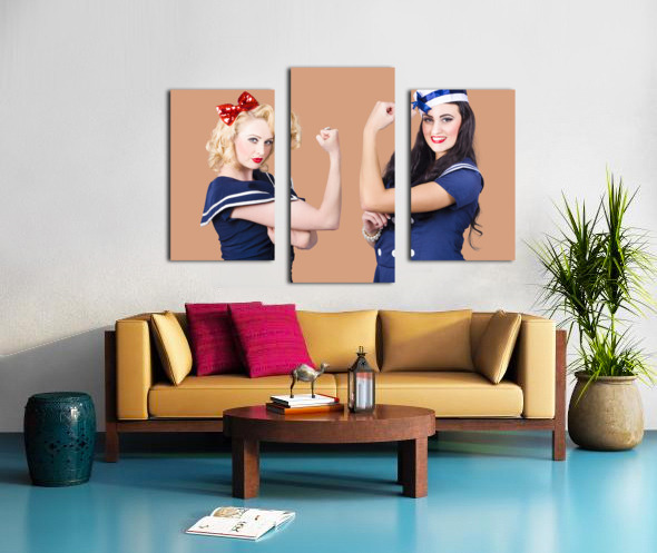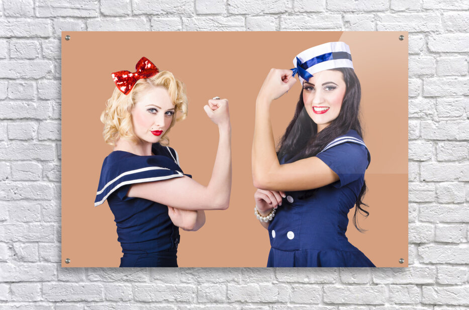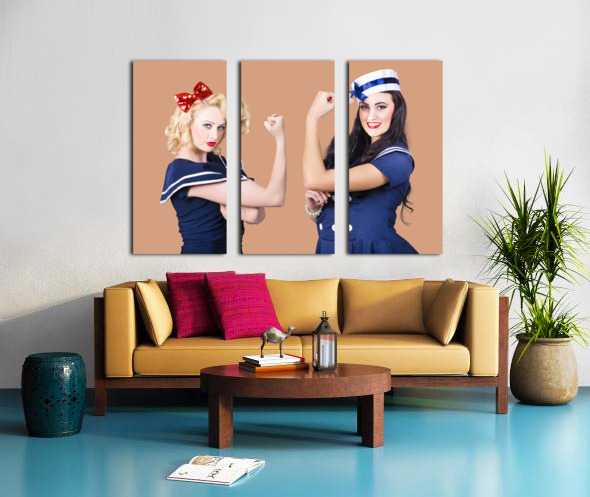 Pin-up sailor girls showing physical strength Frame print