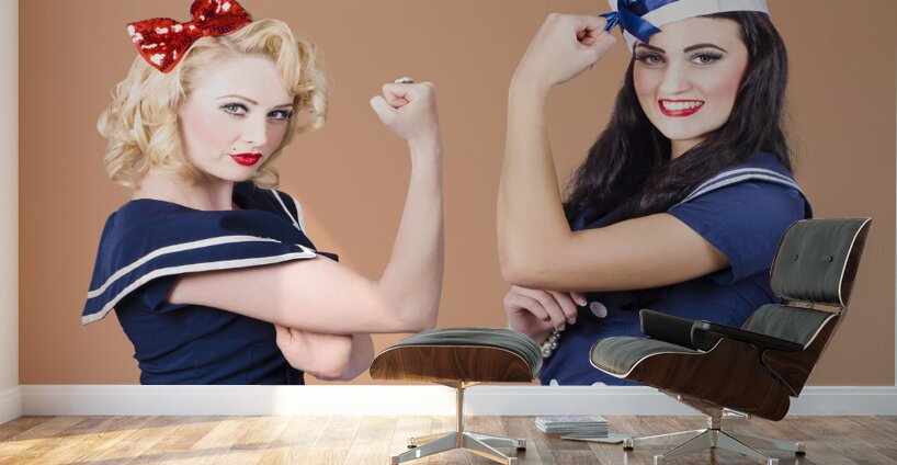Get this artwork "Pin-up sailor girls showing physical strength" in a framed print.