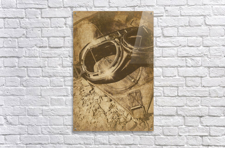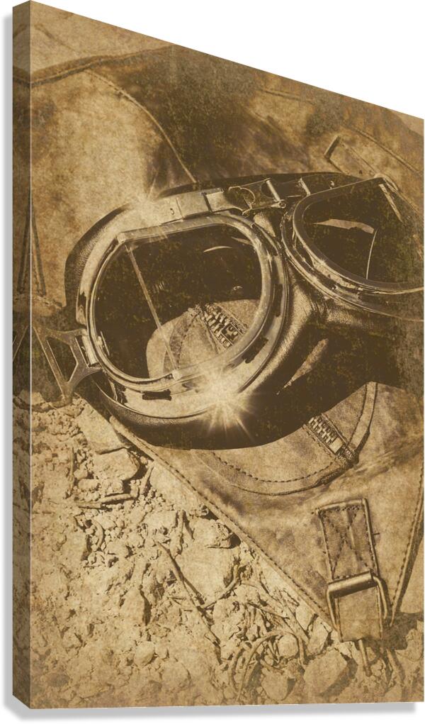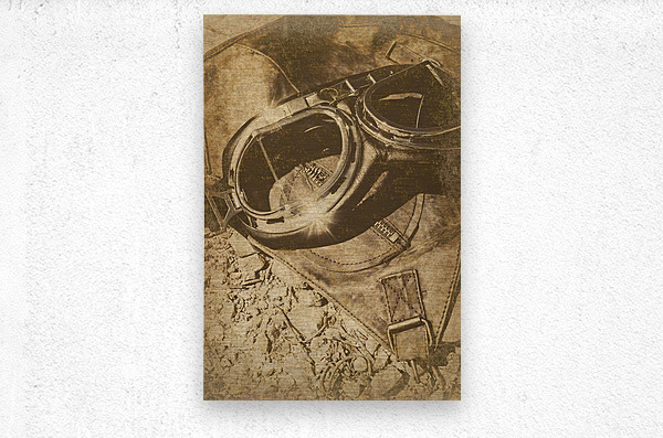 Old fashioned ww2 still-life photo on a pilots cap and goggles in faded combat style. The antique aviator