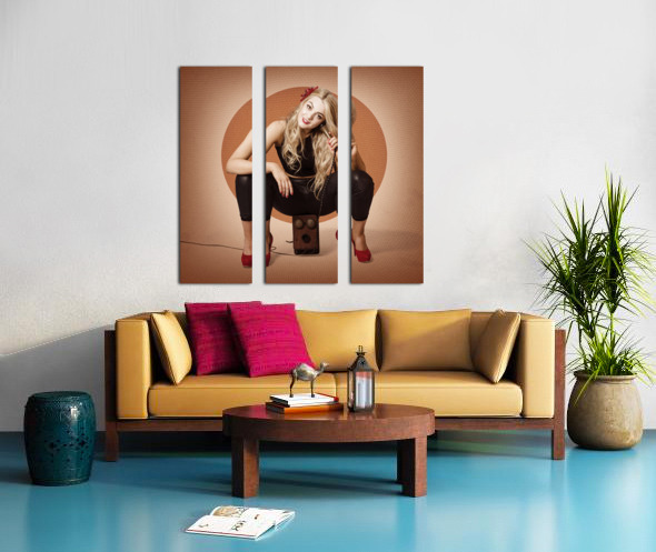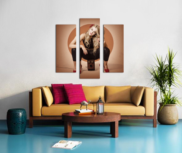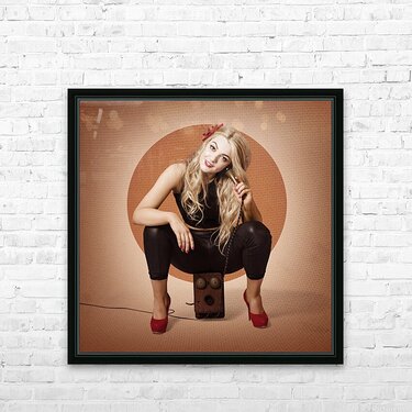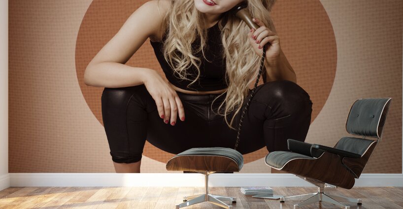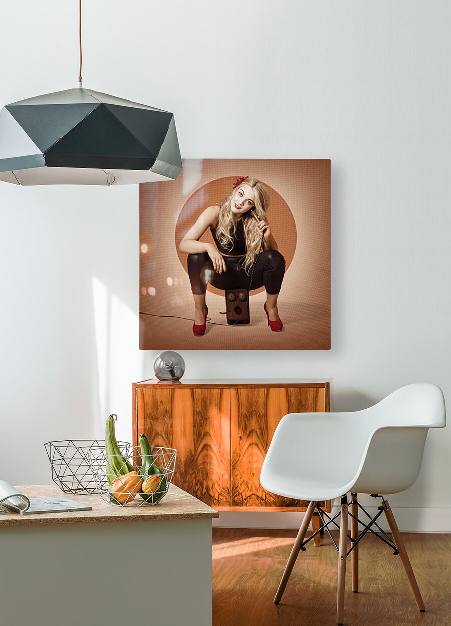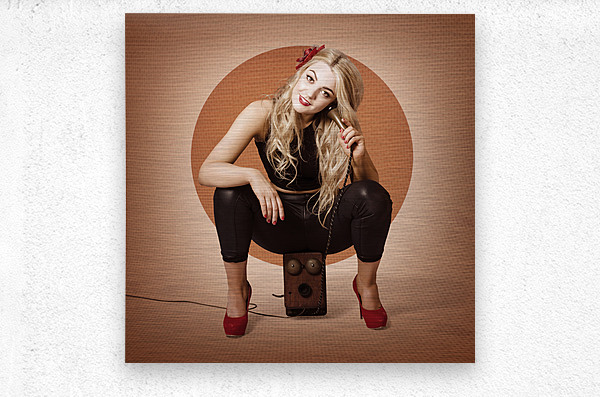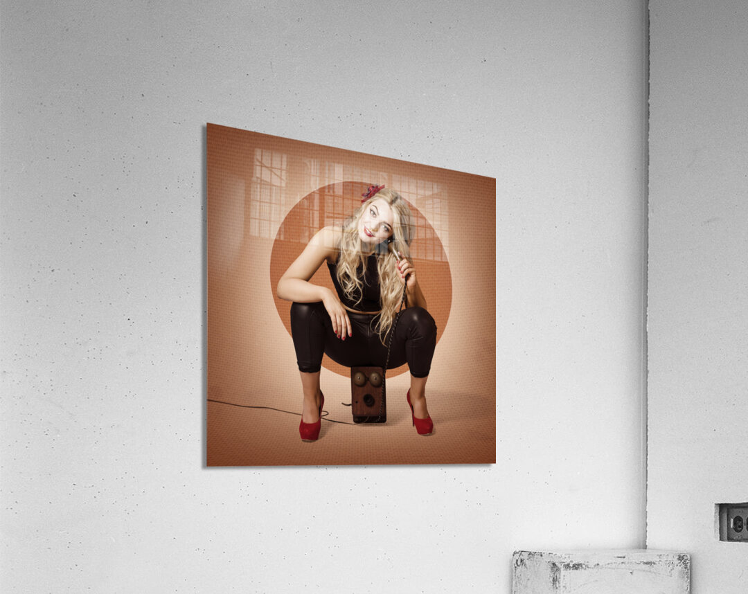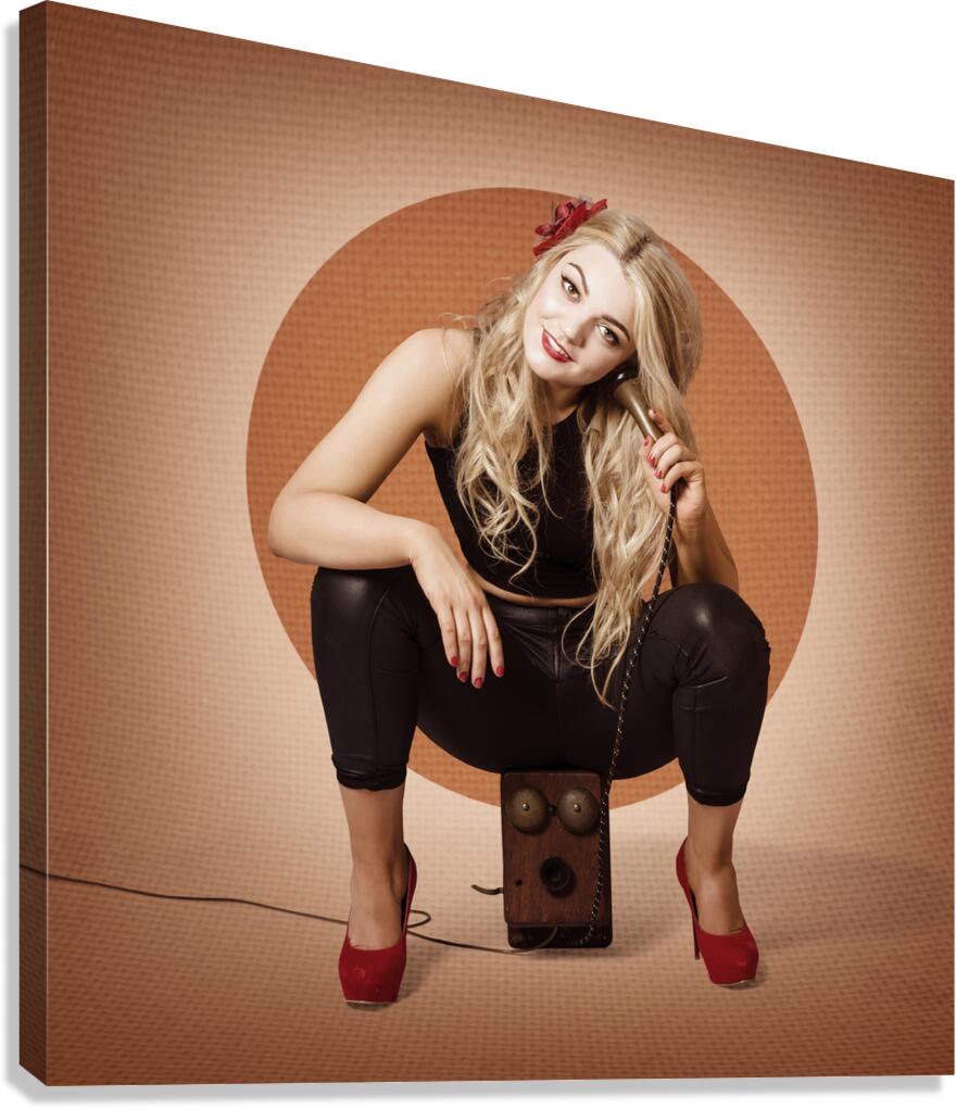 ABOUT THIS ARTWORK: HAPPY PIN UP GIRL TALKING ON RETRO BOX TELEPHONE