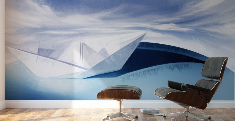 Daydream drawing of a paper boat smooth sailing a vast perspective of clear skies on the great blue yonder. Paper knots and cardboard seas