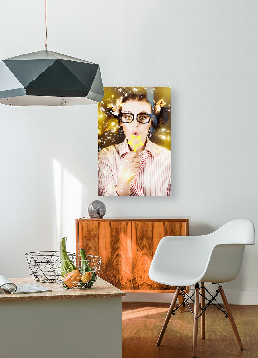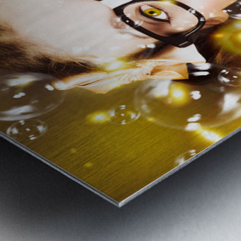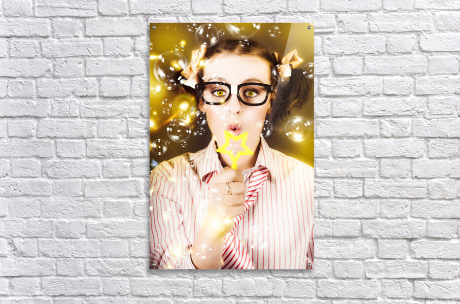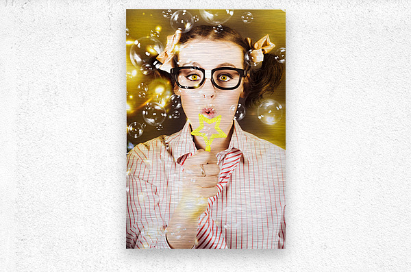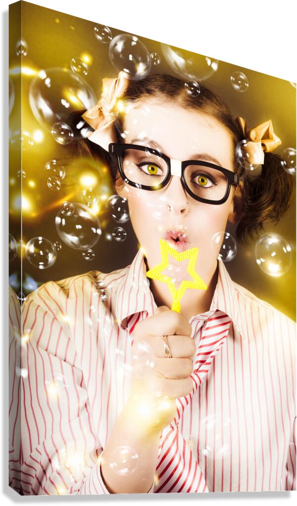 Female Nerd Blowing Bubbles Of Business Success Picture Frame Printing