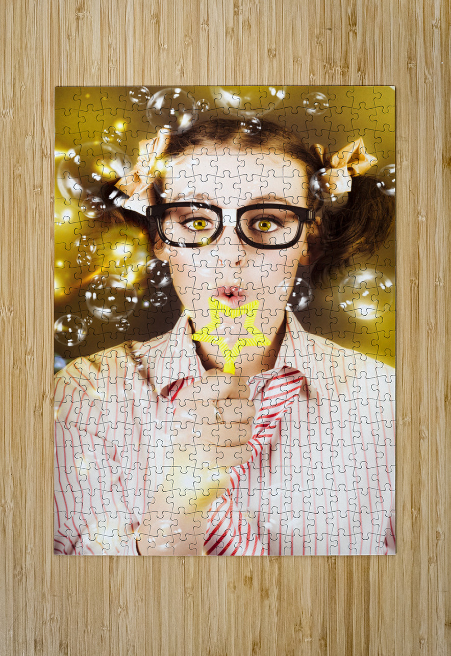 Female Nerd Blowing Bubbles Of Business Success Jorgo Puzzle printing