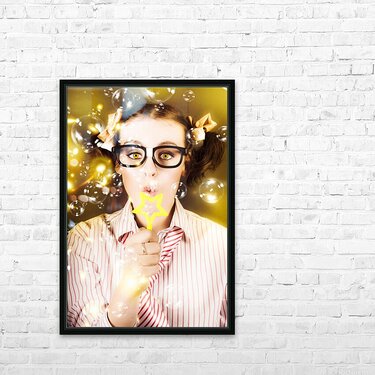 Female Nerd Blowing Bubbles Of Business Success Frame print