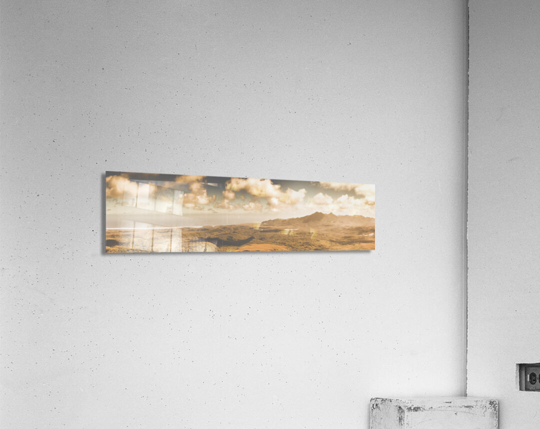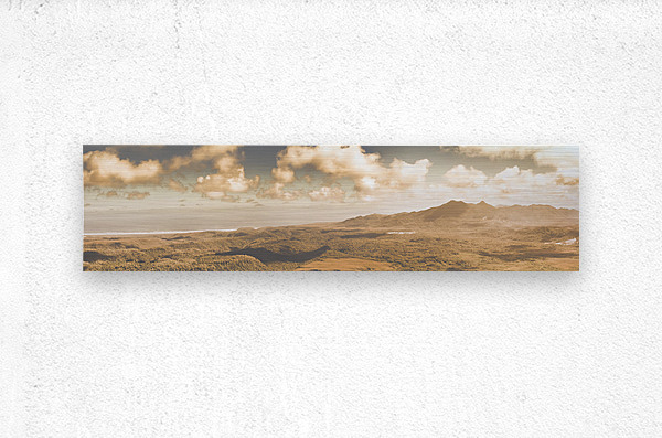 Panoramic view of the Trial Harbour from vantage point of Mt Zeehan Tasmania Australia traveler concept - mountain landscape with hills and valleys ocean in the background