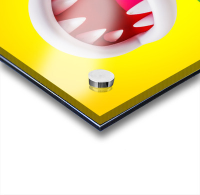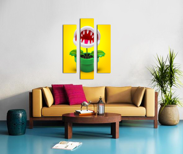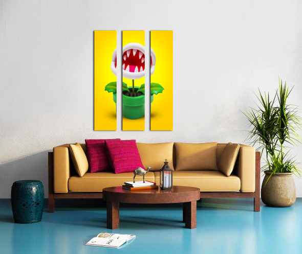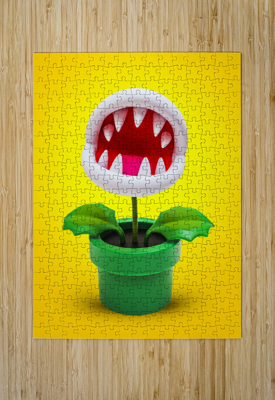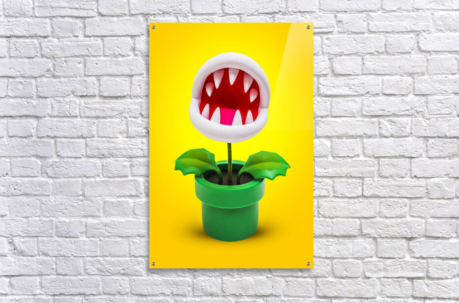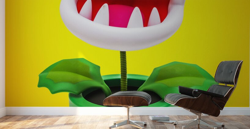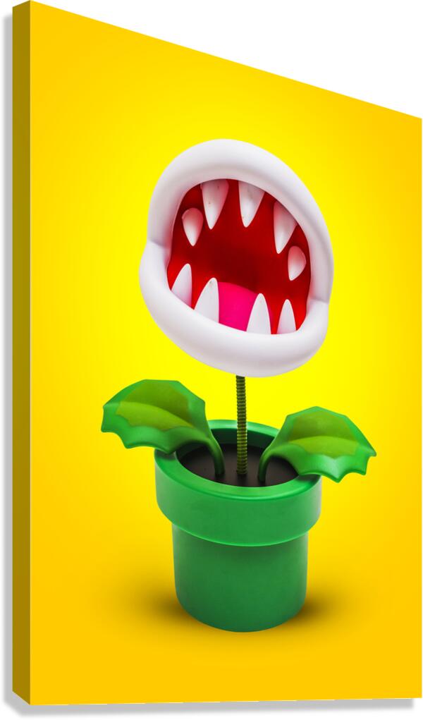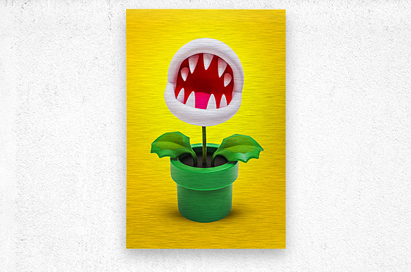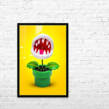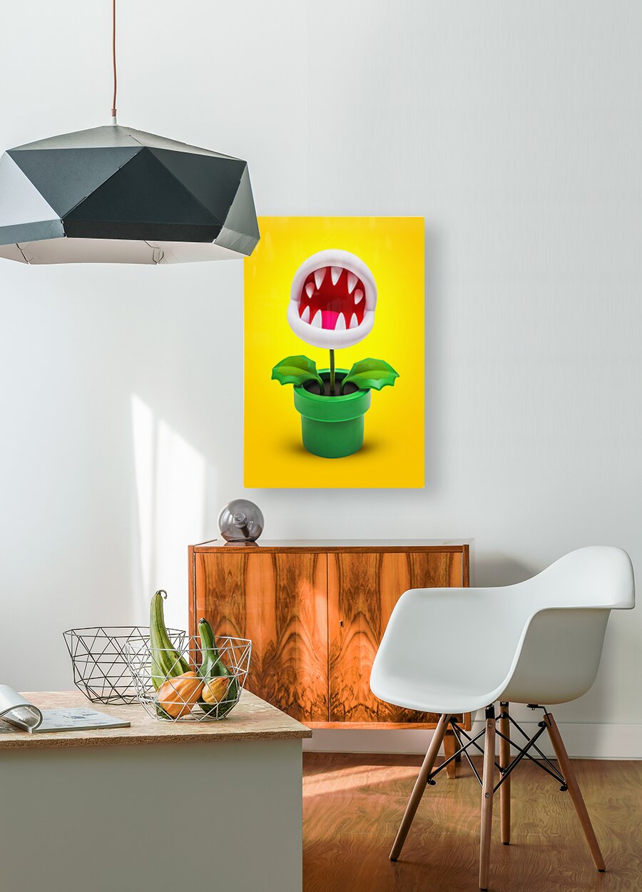 Gaming art on a monster piranha pot plant on bright yellow background. RaveNES