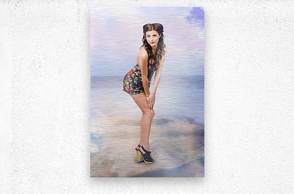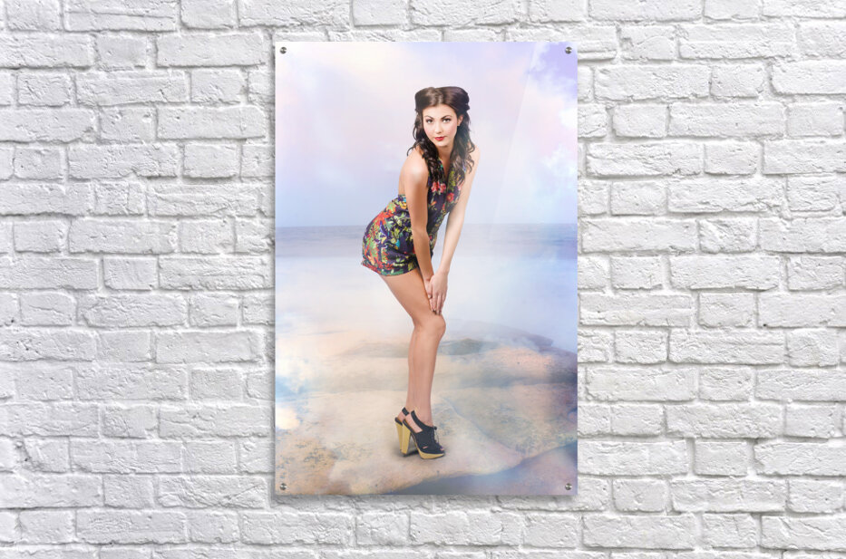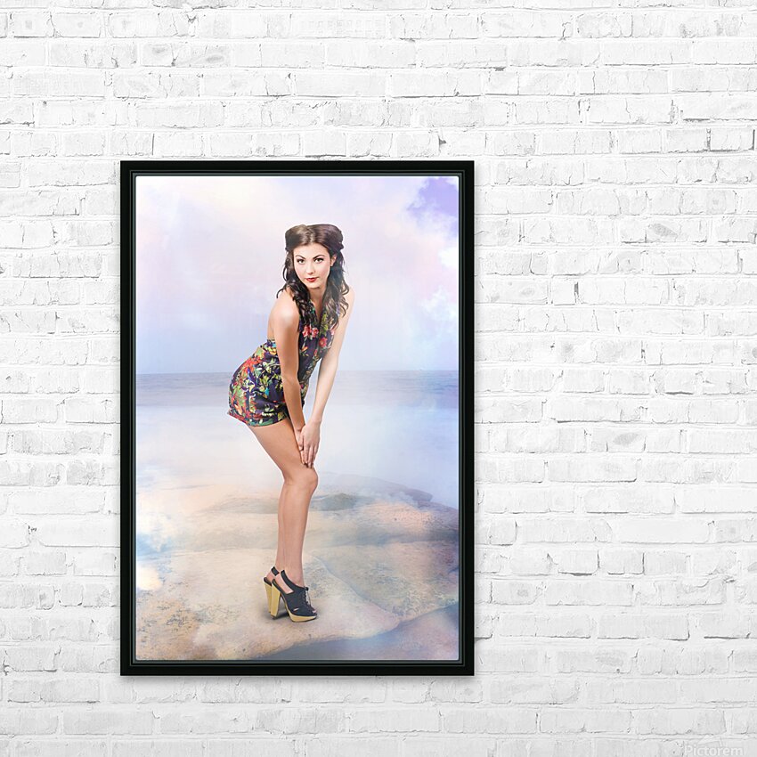Creative summer fashion. Woman in floral dress Picture Frame Printing