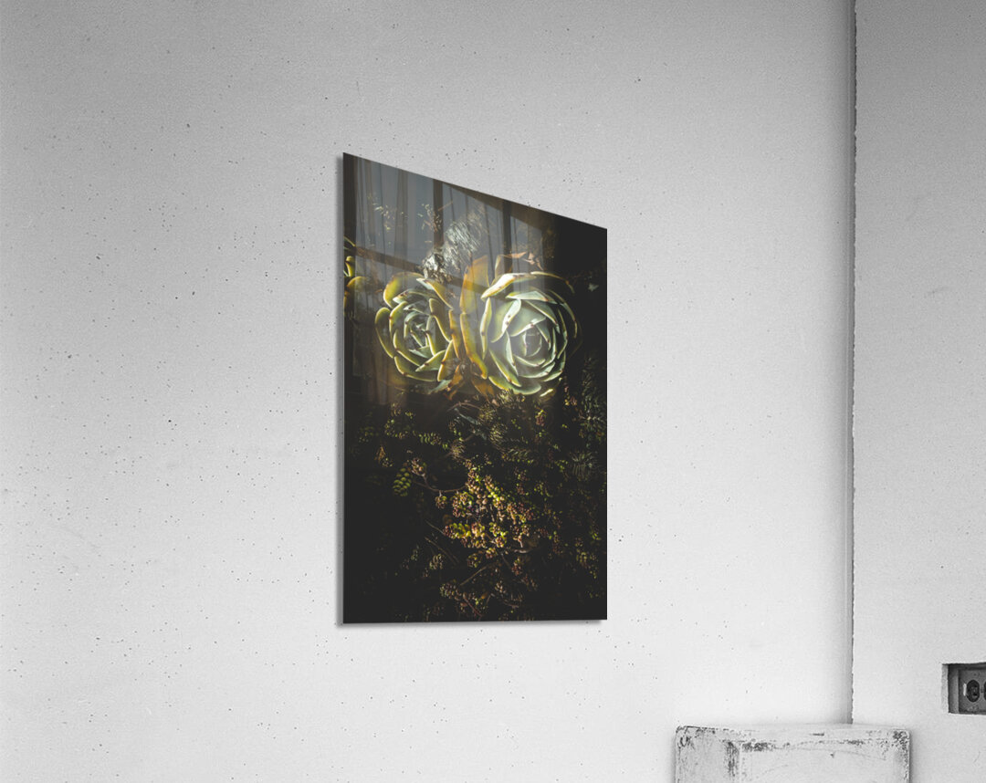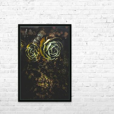 Vertical darkness capture on two succulent plants also known as succulents or sometimes fat plants from their water retention qualities in arid climat...[+]