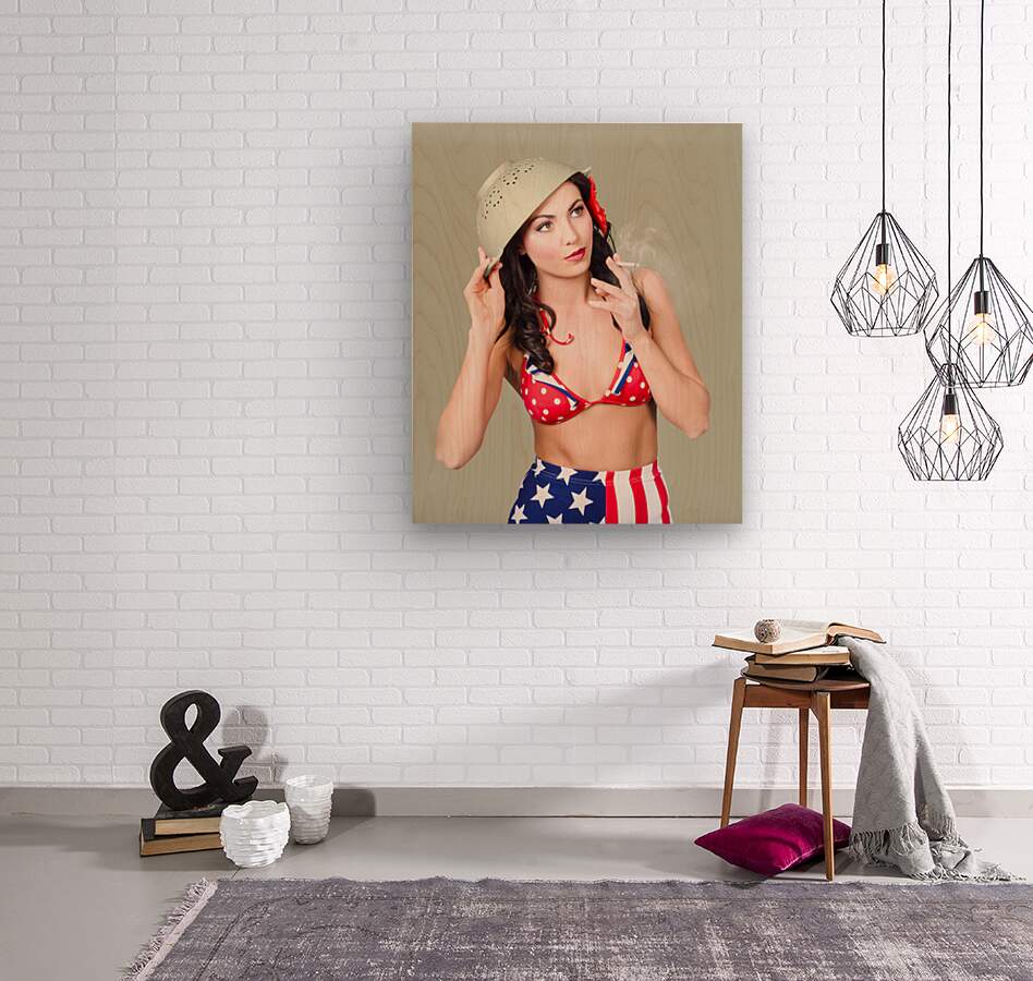 Smoking hot American military pin-up girl  Wood print