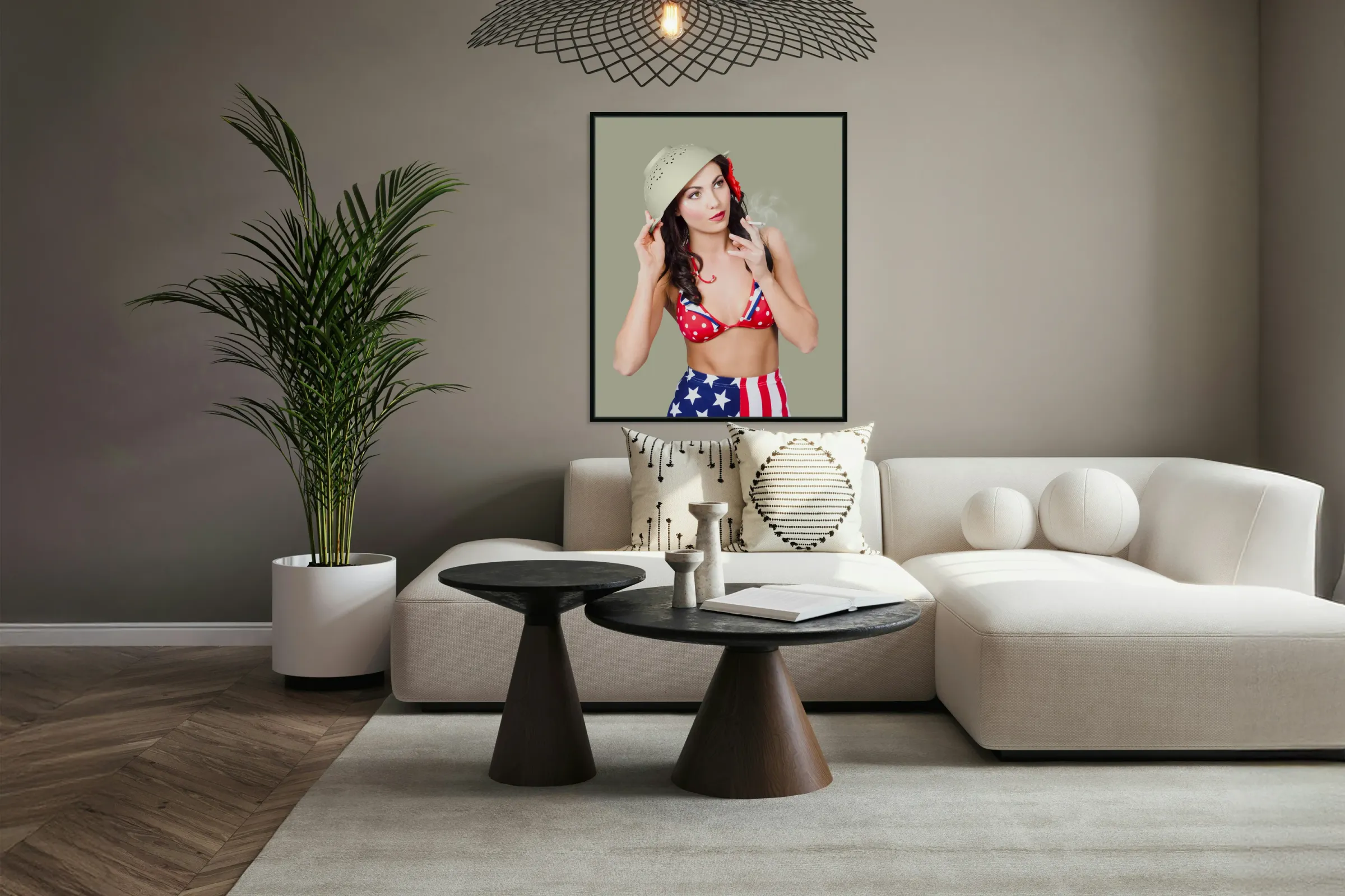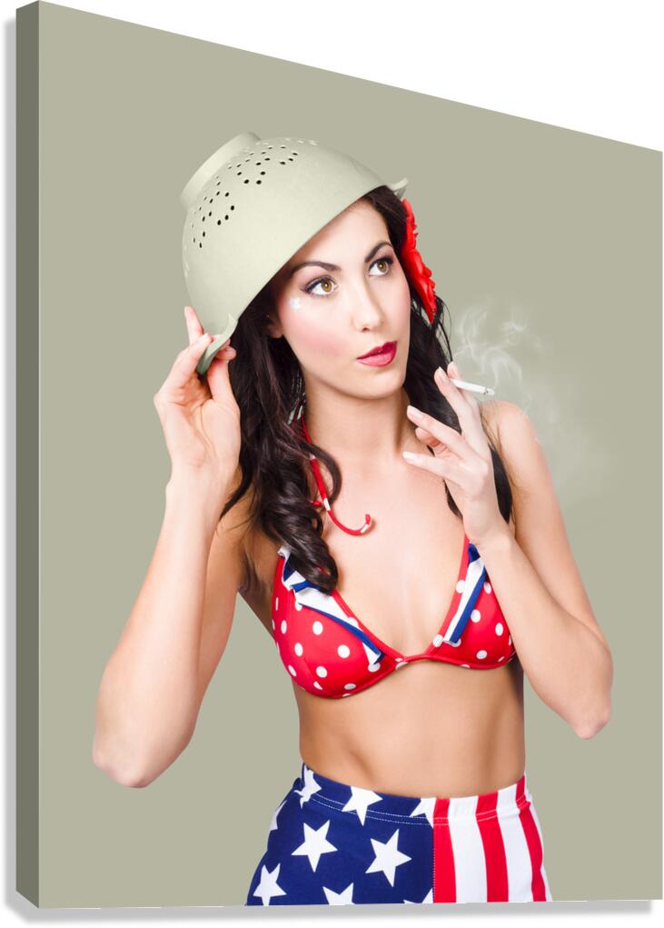 Get this artwork "Smoking hot American military pin-up girl" in a framed print.