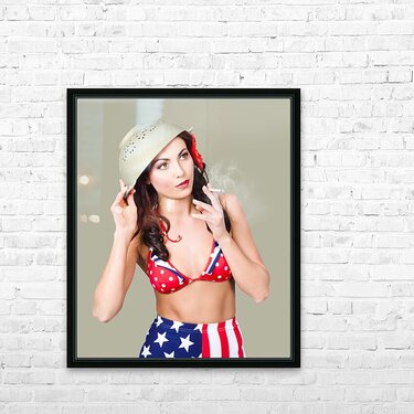 Smoking hot American military pin-up girl Picture Frame Printing