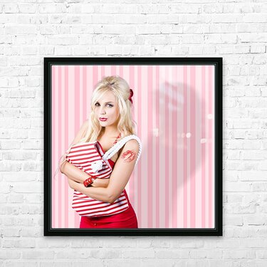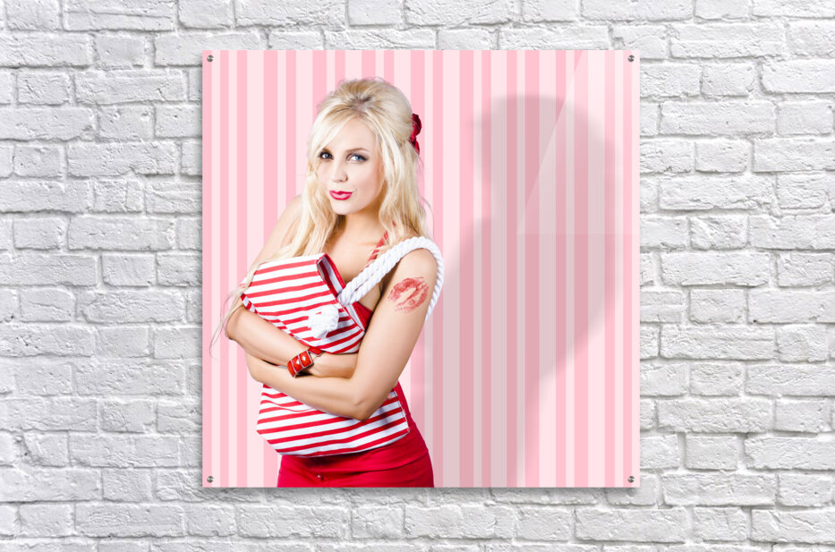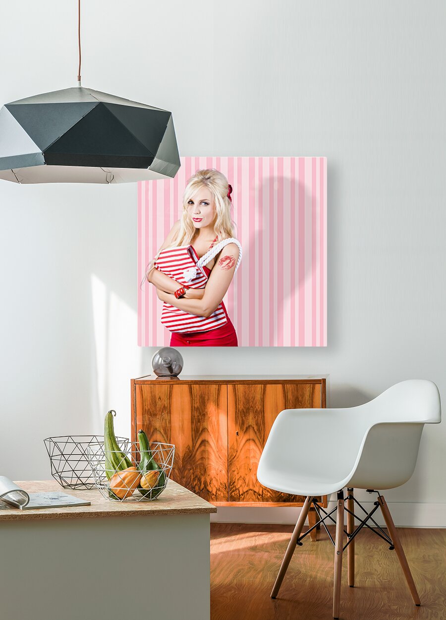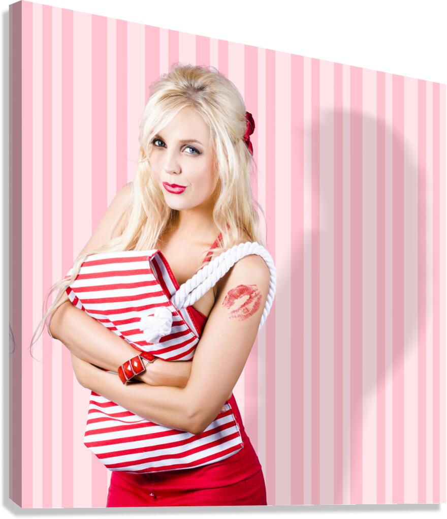 Pinup Portrait Of A Beautiful Glamor Girl Holding Retro Carry Bag In A Depiction Of Women With Classic Fashion Style