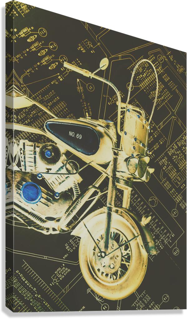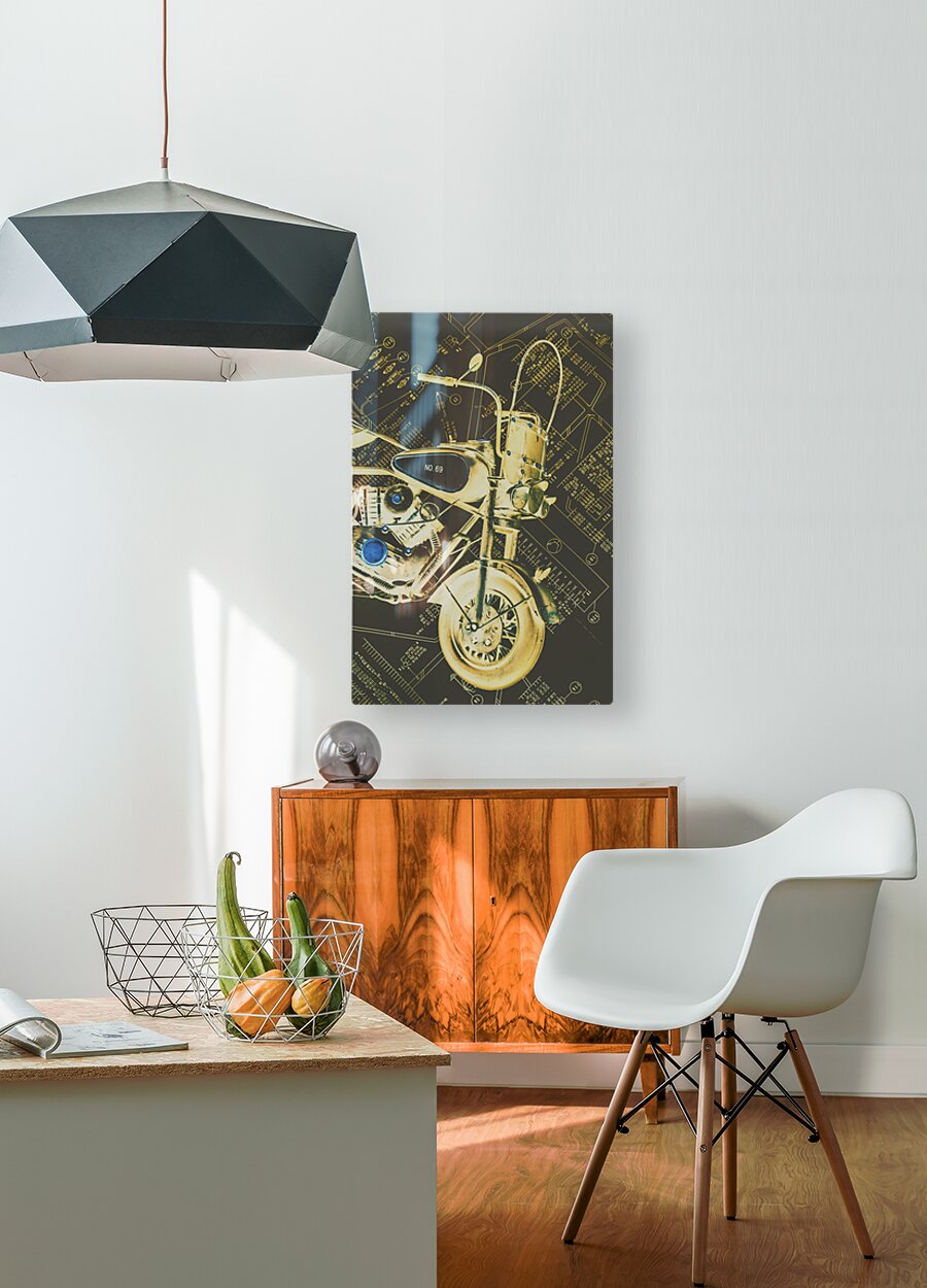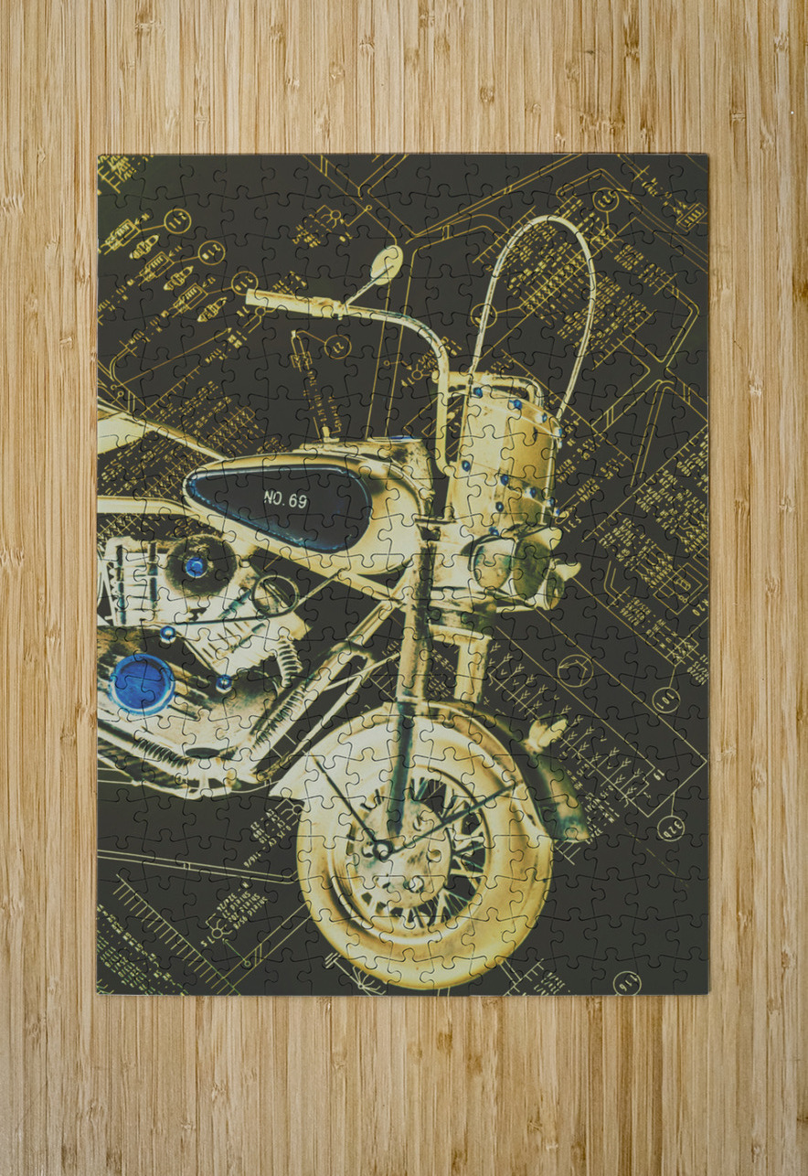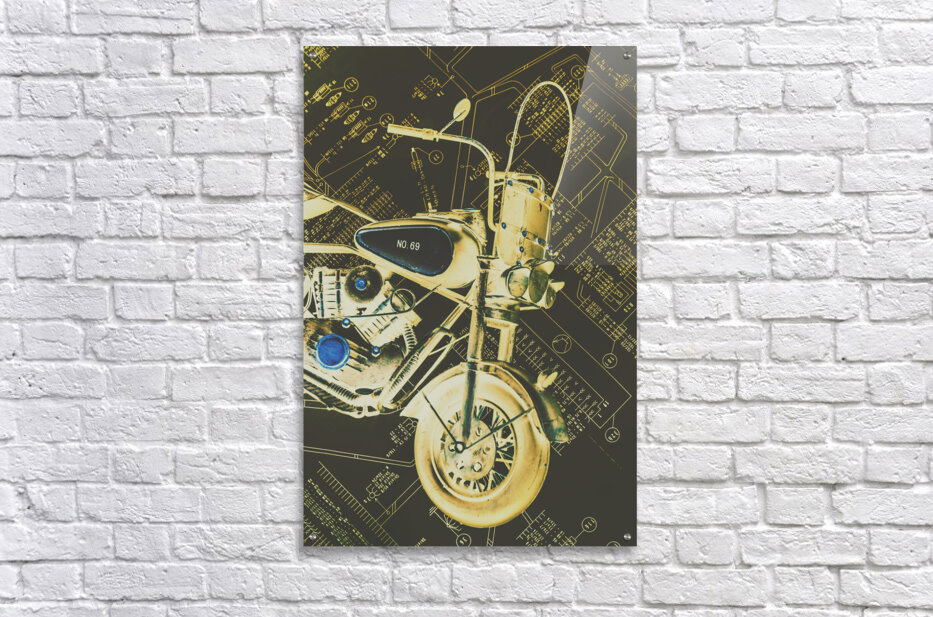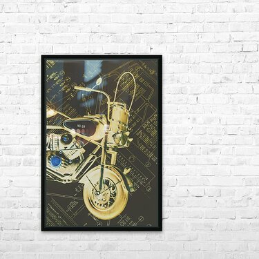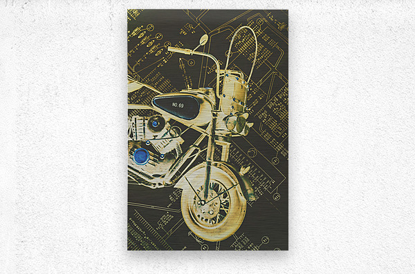 Fine art biker design on a detailed blueprint of industrial motor bike technicality Custom Specs