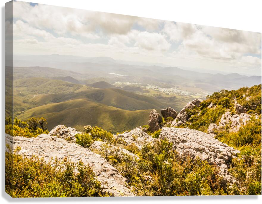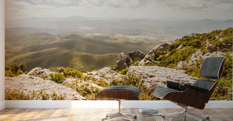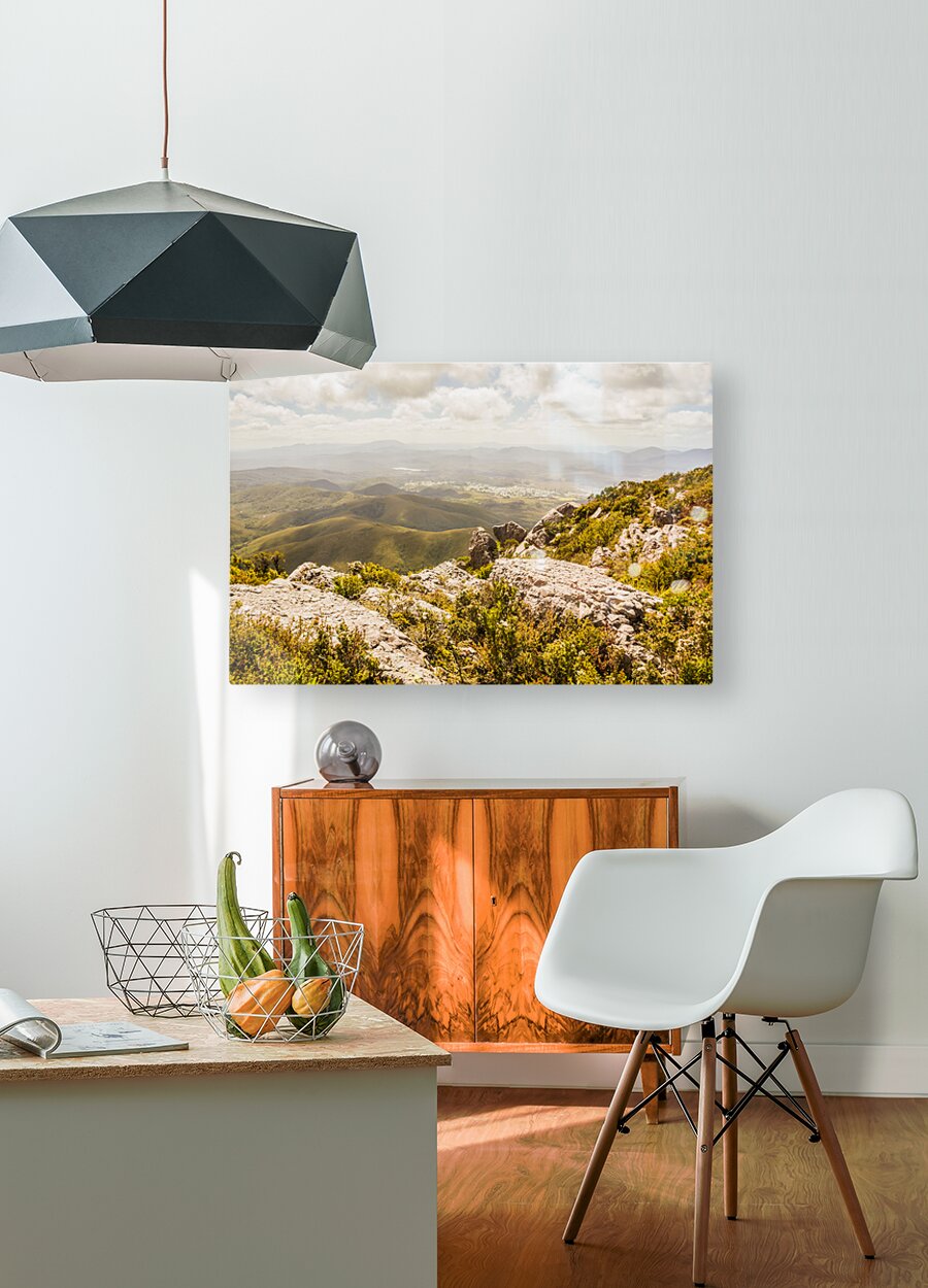 Beautiful mountaintop rocky landscape on a quaint rural town valley Taken Zeehan Tasmania Australia
