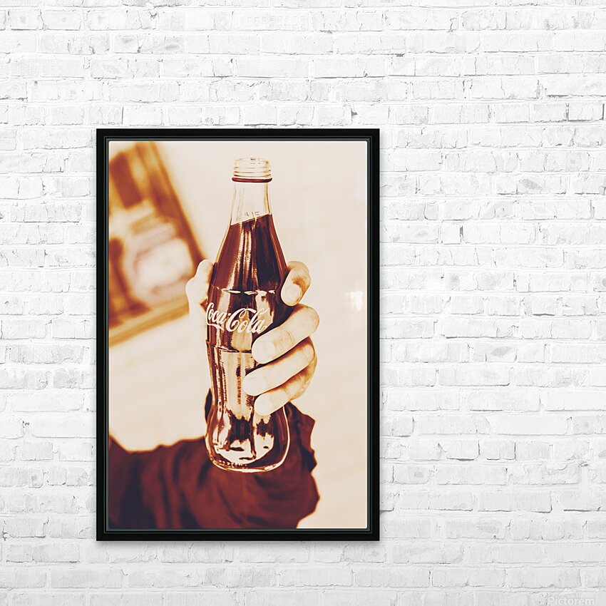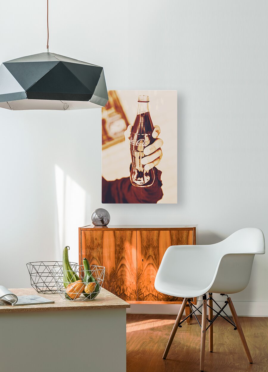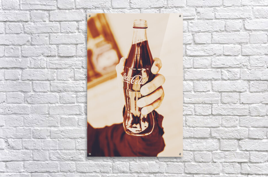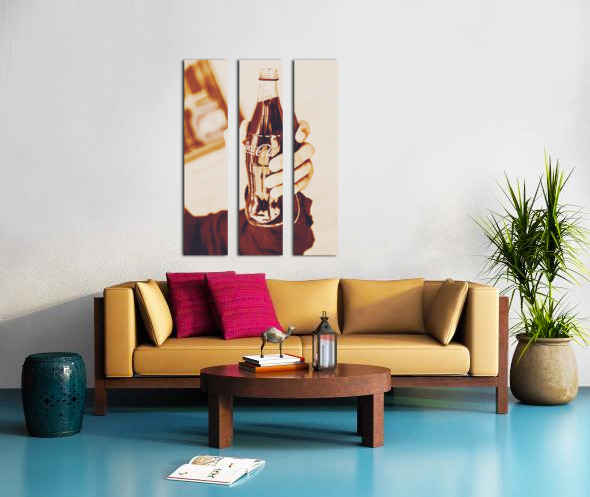 Antique stylised brand art on a hand tipping a soda to vintage cheers