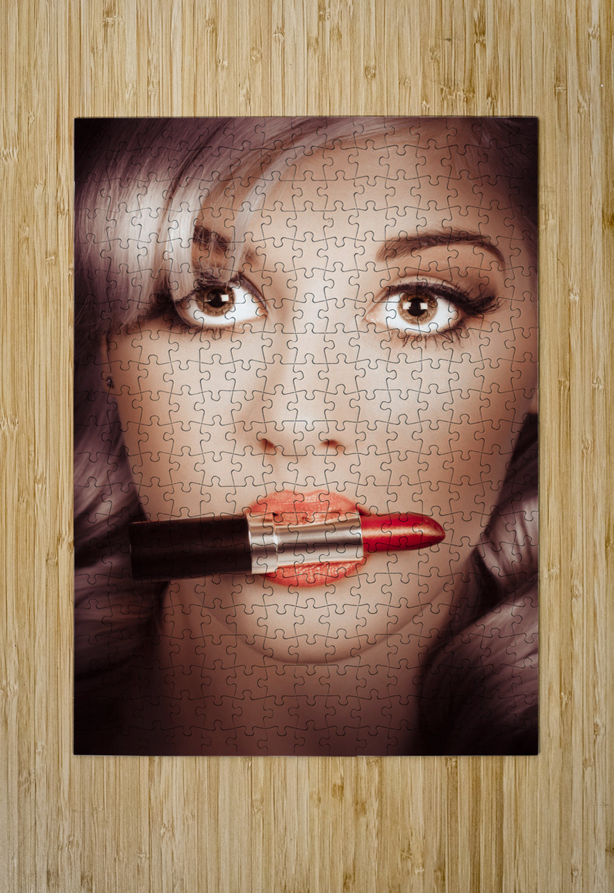 Surprised pinup girl with lipstick makeup in mouth Jorgo Puzzle printing