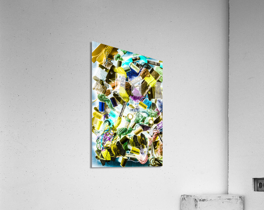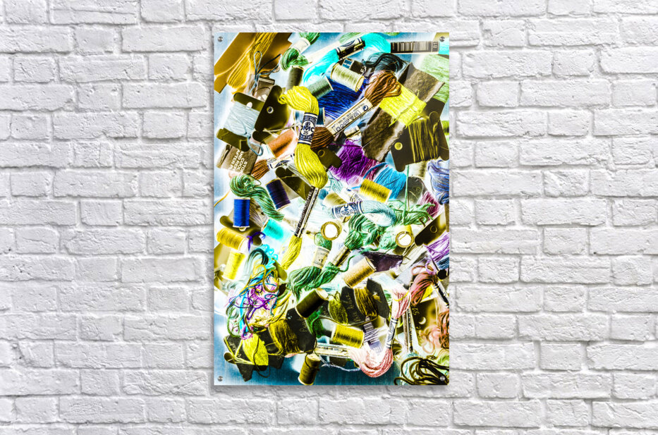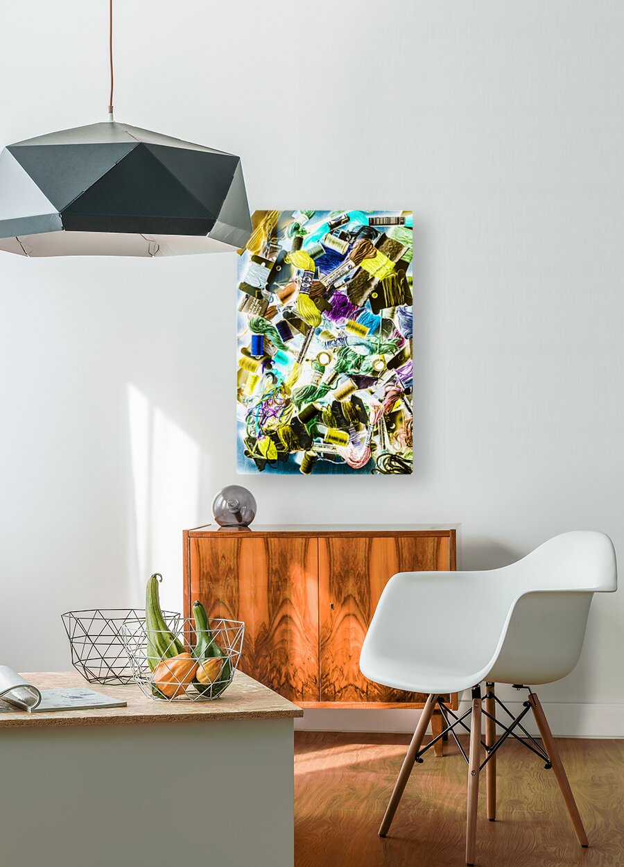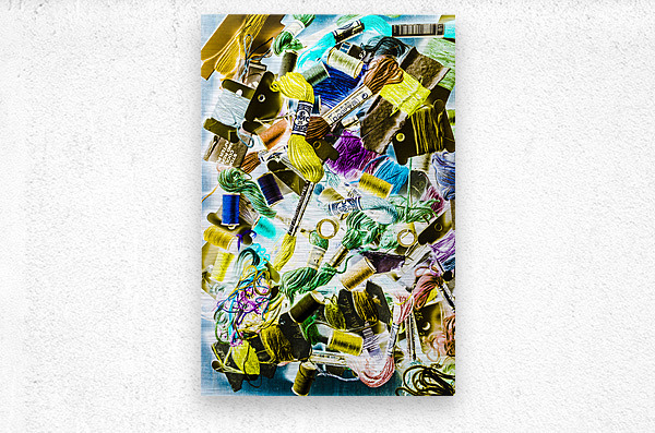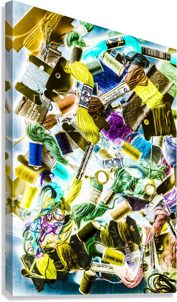 Colourful sewing abstract on creative embroidery threads in pop art composition. Crafted in retro
