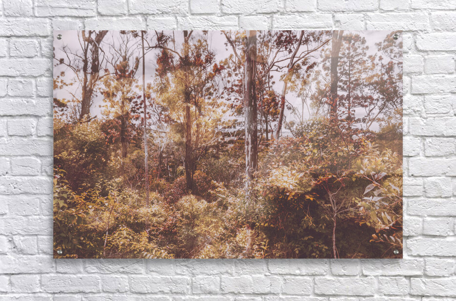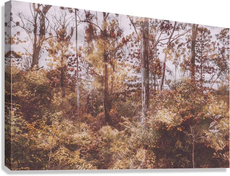 Creative country scene of painterly photography with bushland scrub in washes of warmth. Mt Walsh National Park Biggenden Queensland Australia
