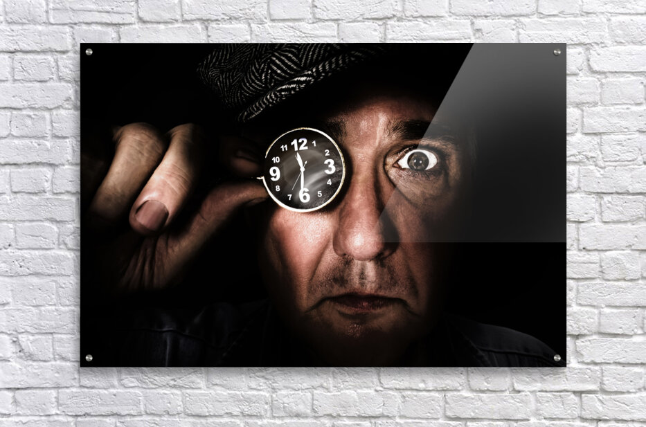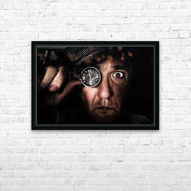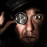 Face of a fearful man reliving past nightmares forgotten while stuck in a time loop of illusory design