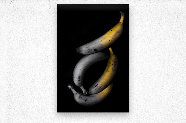 Fine art still life photo on a balancing set of bananas in divide from a duo tone process on black. Banana Split