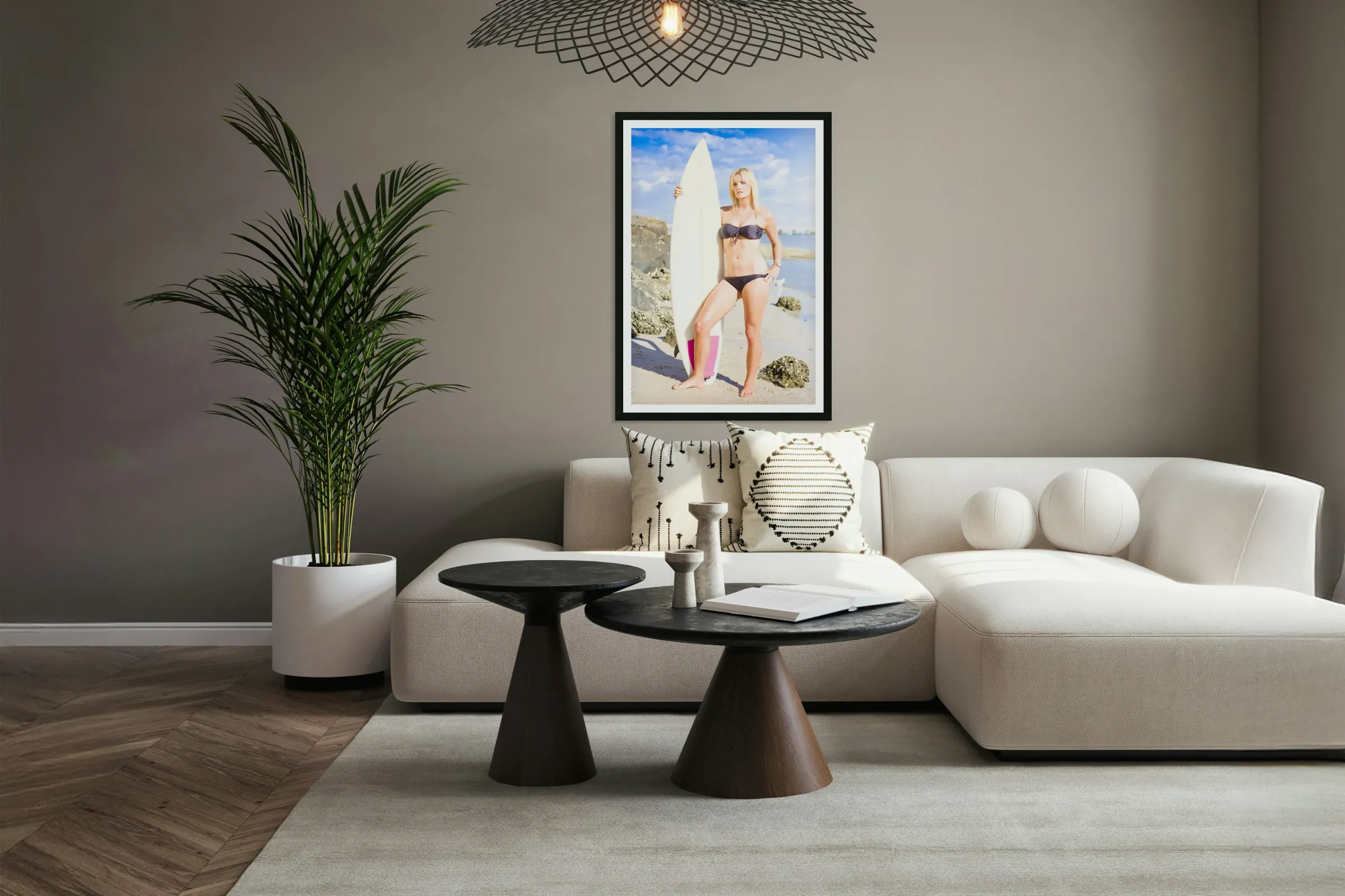 Beautiful Young Blond Surf Woman Picture Frame Printing