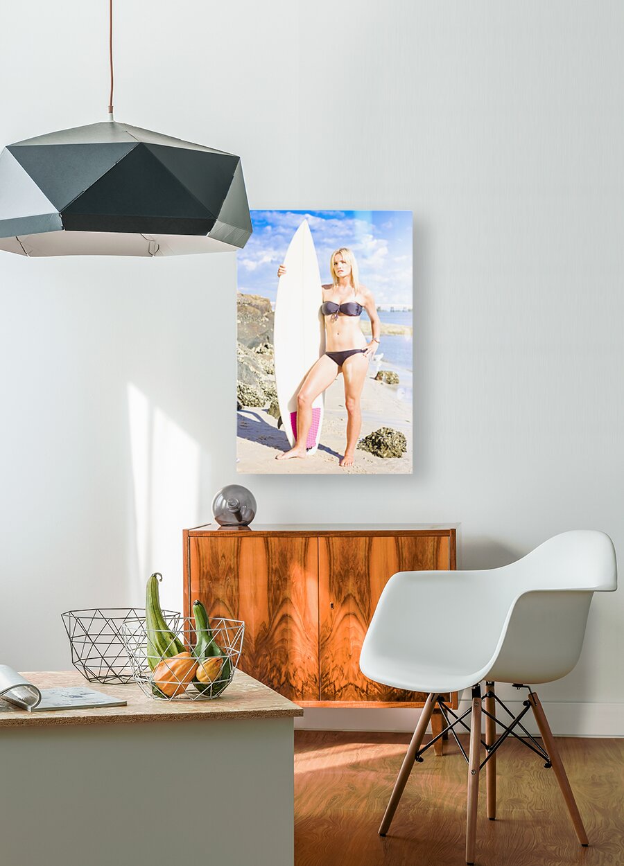 Get this artwork "Beautiful Young Blond Surf Woman" in a framed print.