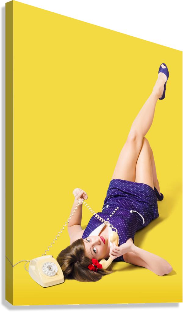 Get this artwork "Retro 1950s pinup girl chatting on telephone" in a framed print.