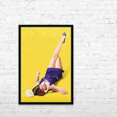 Retro 1950s pinup girl chatting on telephone Picture Frame Printing