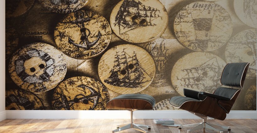 Flared fine art insignia on nautical emblems inscribed on coastal coasters. Port of corks at the old sail tavern