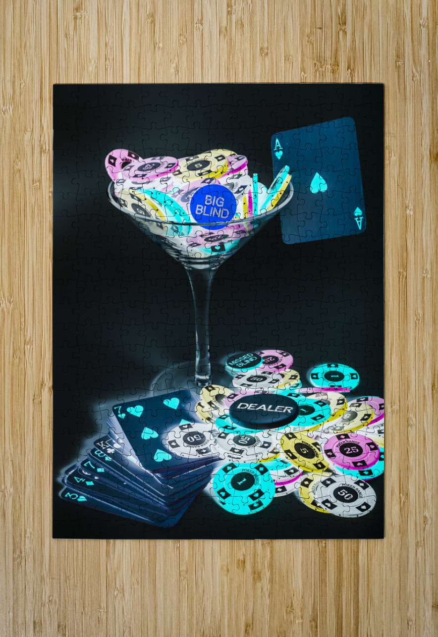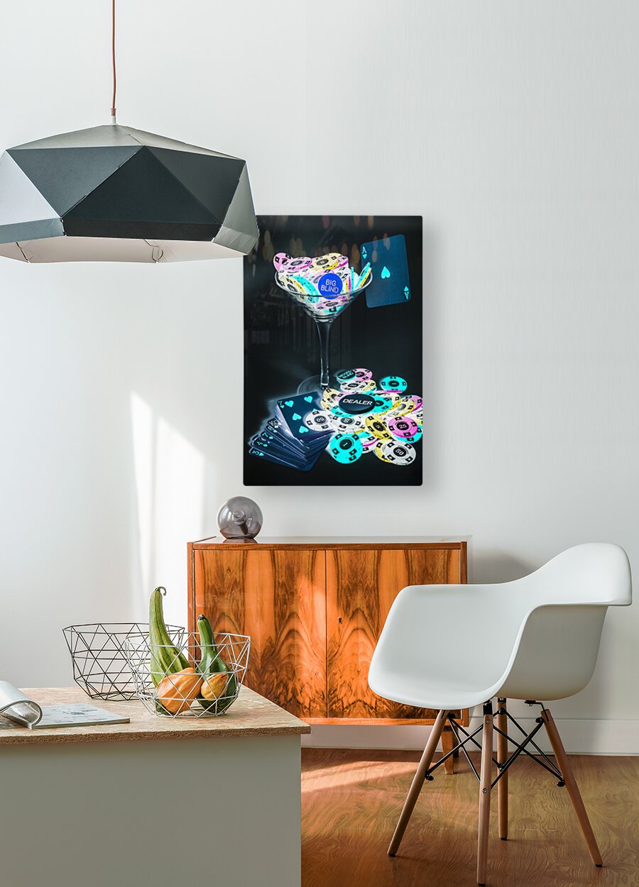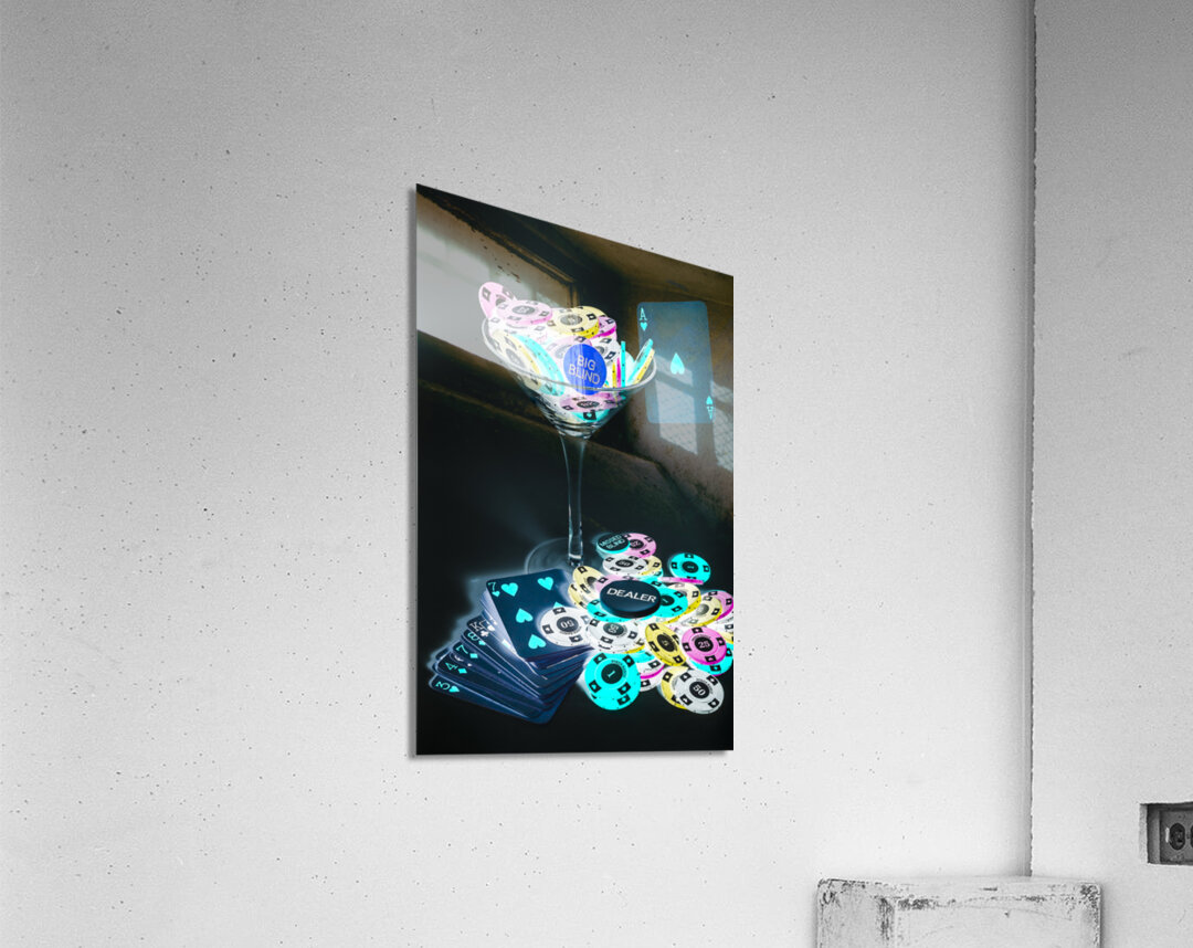 Creative nightlife conceptual on a casino cocktail of token luck. Win and tonic