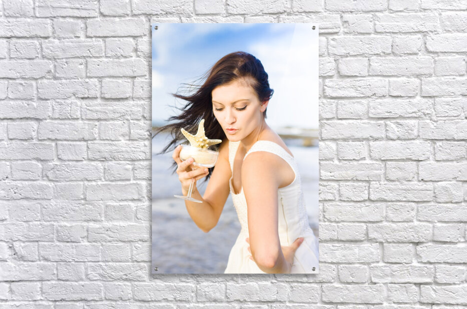 Woman Holding Star Fish Cocktail Picture Frame Printing