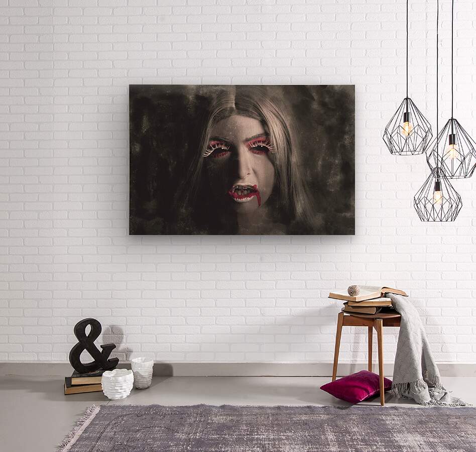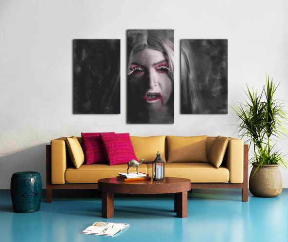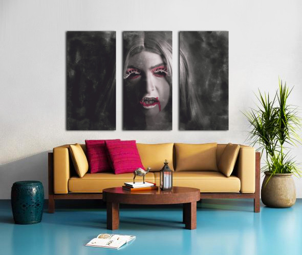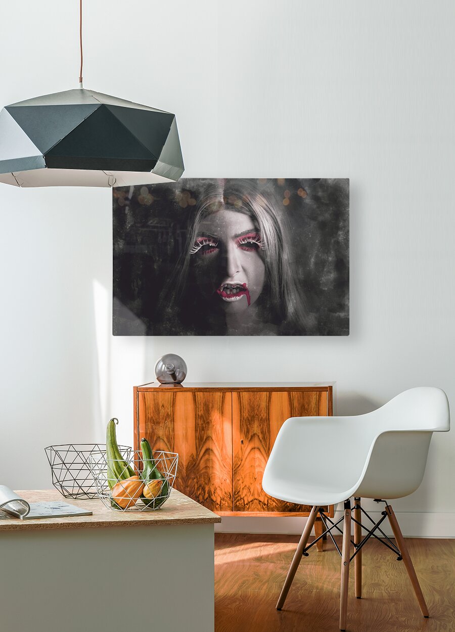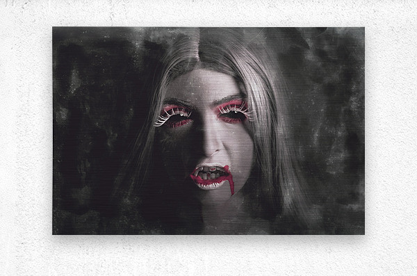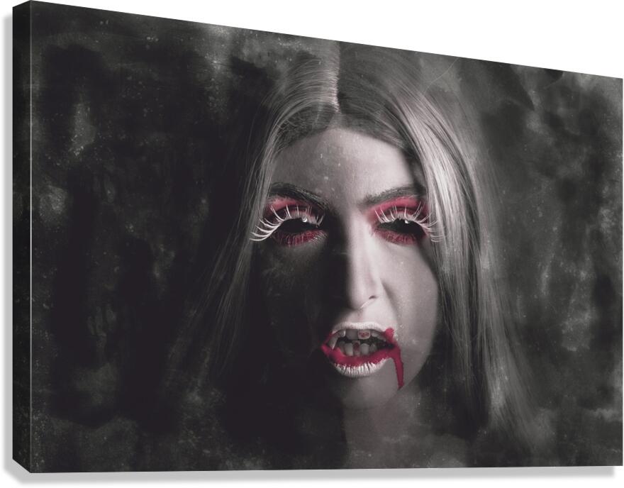 Get this artwork "Sinister portrait of scary vampire woman" in a framed print.
