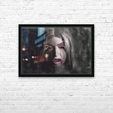 Sinister portrait of scary vampire woman Frame print