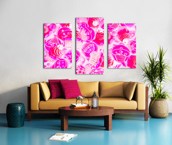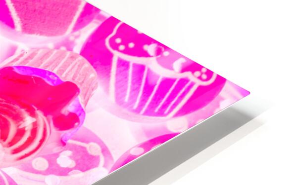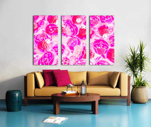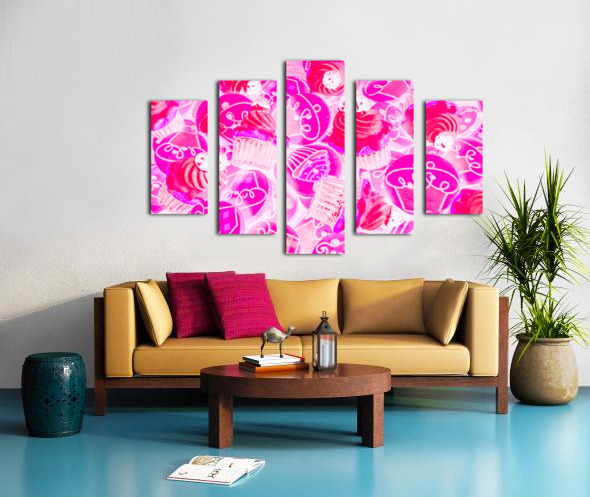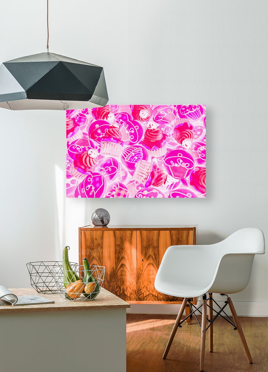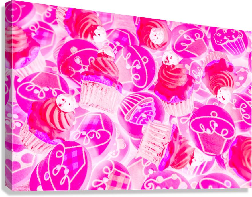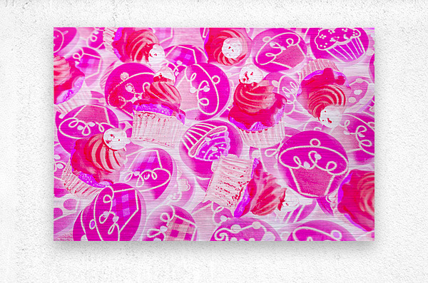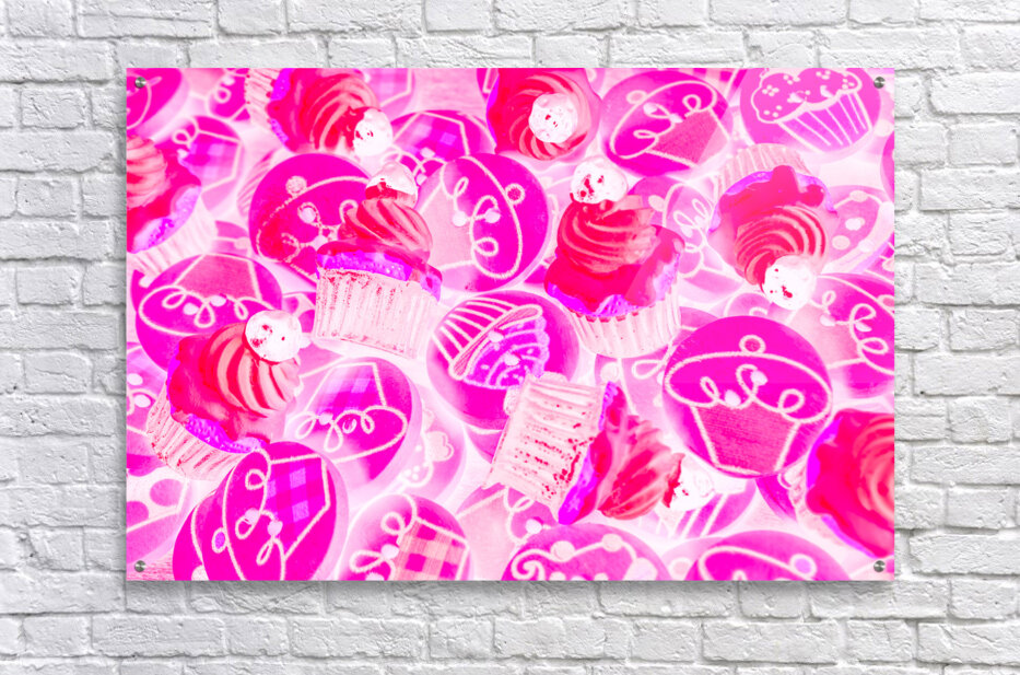 Bright pink abstract artwork on a decorative batch of creamy cupcake bakes. Strawberry sweets
