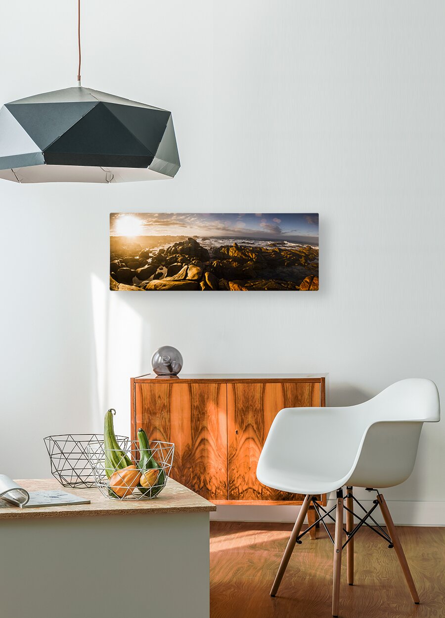 Morning ocean panorama Wood print
