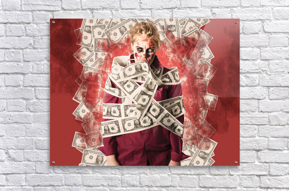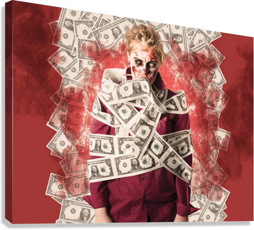 Get this artwork "Zombie tied up in financial debt. Dead money" in a framed print.