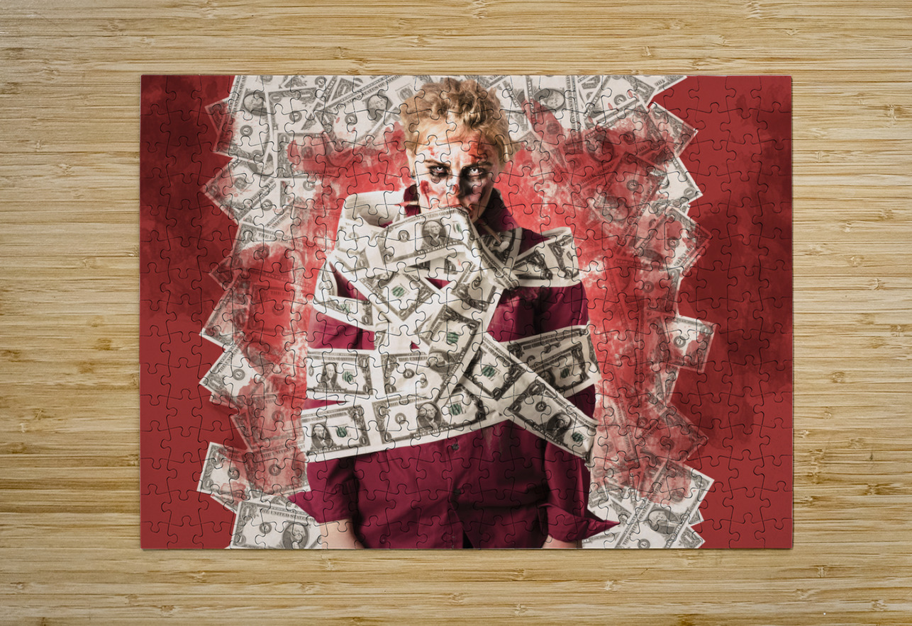 Zombie tied up in financial debt. Dead money Jorgo Puzzle printing