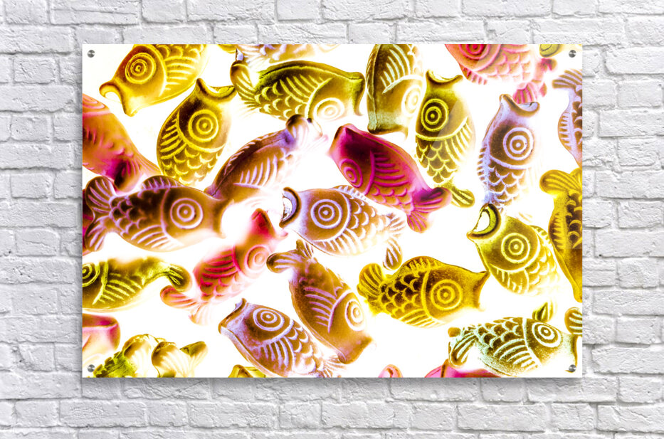 Colorful bright decor art mixed up on bright white with koi carp in contemporary pop. Colorkoi