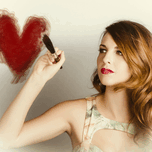 Young vintage woman painting a red heart with paint brush in a be my valentine concept