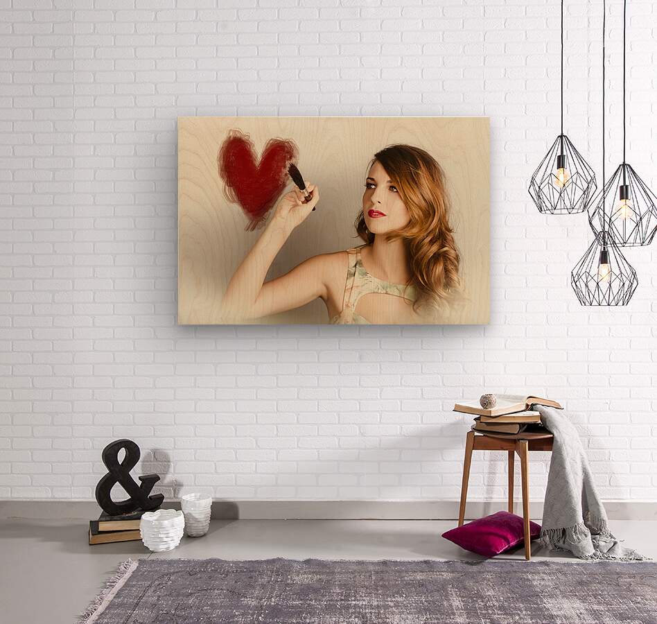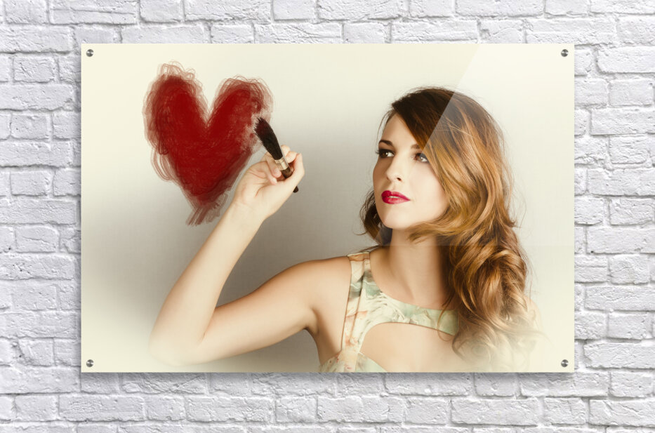 Beautiful retro girl painting red love heart Picture Frame Printing