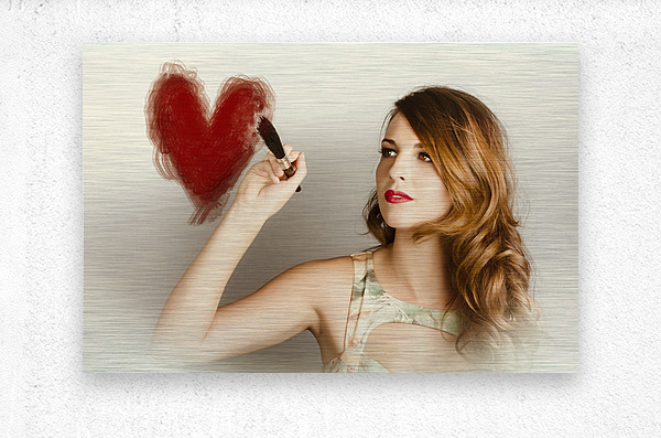 Get this artwork "Beautiful retro girl painting red love heart" in a framed print.