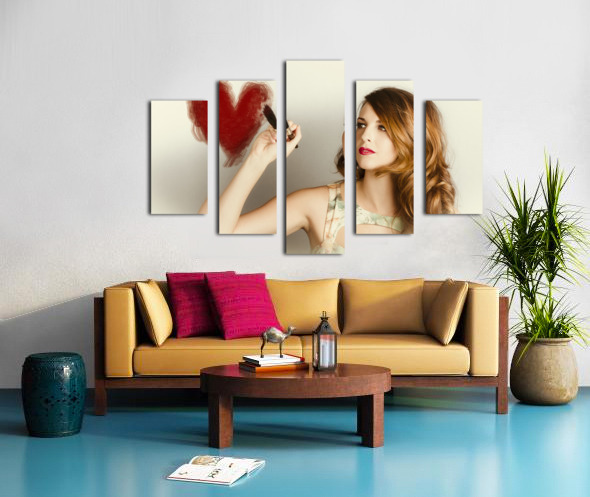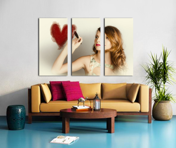 Beautiful retro girl painting red love heart Jorgo Puzzle printing